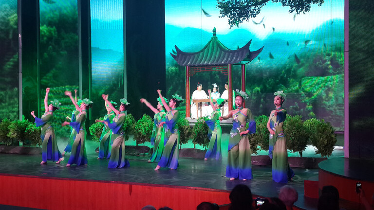 今年去武夷山,有幸观看了“印象大红袍山水实景演出”。《印象大红袍》山水实景演出是由张艺谋、王潮歌、樊跃共同组成的“印象铁三角”领衔导演,是他们继《印象刘三姐》、《印象丽江》、《印象西湖》、《印象海南岛》后创作的第五个印象作品,也是以双世遗产地——武夷山为地域背景,以武夷山茶文化为表现主题的大型实景演出。