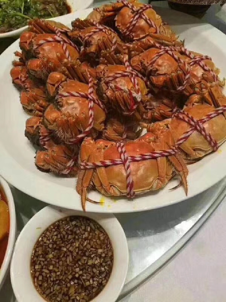 有次出差,就在阳澄湖边上的饭店吃的螃蟹宴。湖边上有几十家饭店都是主营螃蟹的,进去之后先经过蟹笼,走到水上屋用餐 的。氛围很重要。