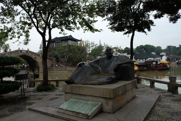 “月落乌啼霜满天,江枫渔火对愁眠。姑苏城外寒山寺,夜半钟声到客船。”苏州的江南古寺寒山寺,被广为人知,皆因一首《枫桥夜泊》而闻名。在枫桥风景名胜区内,还可见当年诗人张继夜泊枫桥的地方。想当年,赶考落榜的张继乘一叶孤舟行至苏州枫桥之下,夜半时分望着江上渔火愁思难眠,这时寒山寺的钟声自凝重的空气中一声声传来,撞进张继耳中,撞在他的心坎,令张继将愁思化成了千古绝唱,写下了尽人皆知的《枫桥夜泊》,其名声也远超当时上榜的所有人。正所谓“塞翁失马焉知非福”。