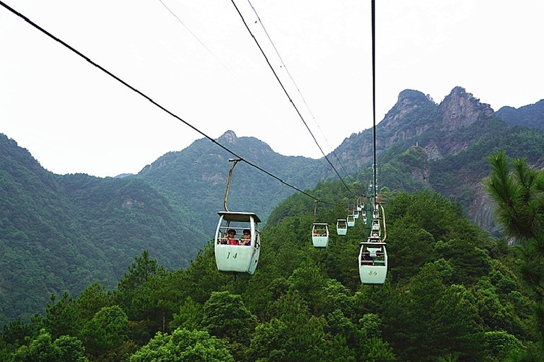 现在登秀峰上下有索道可乘,免去了登山的辛苦。可是我们去时因九江几个月没有下雨了,所看到的瀑布只有一条细细的水流挂在峭壁之上,完全没有了诗人笔下那“飞流直下三千尺”的气势了。