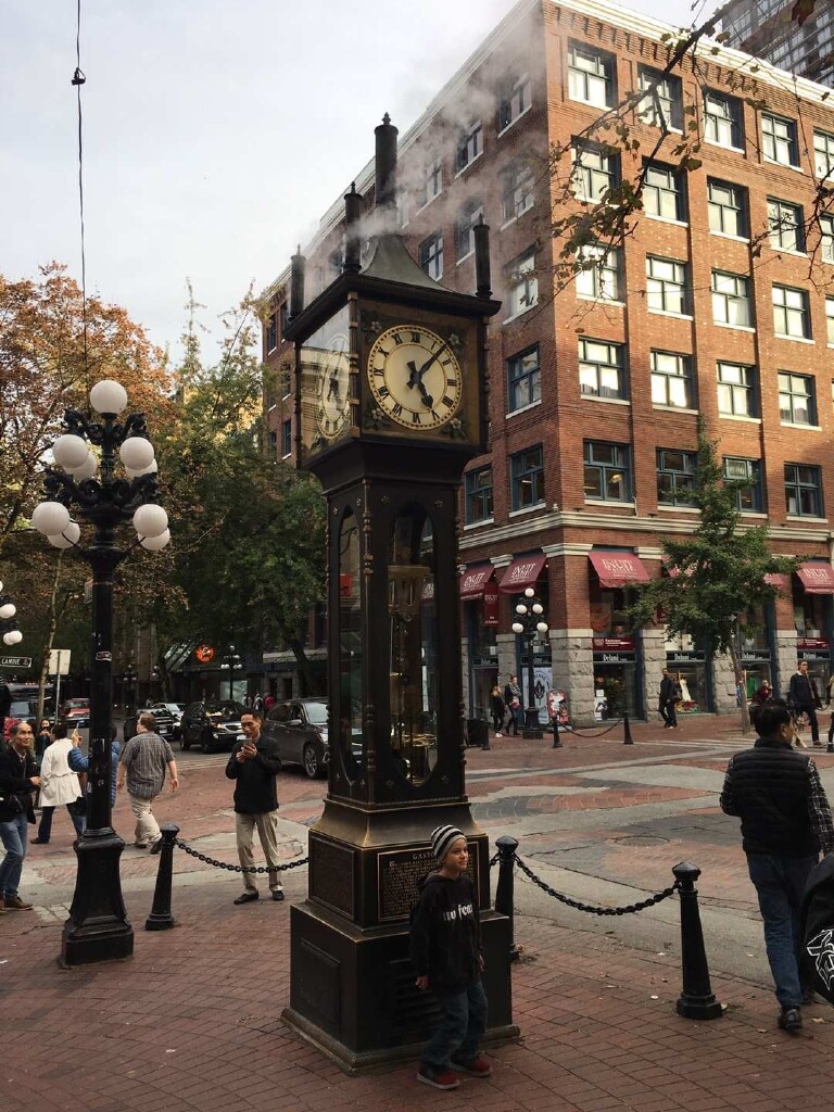 第一天,去有白色五帆的加拿大广场Canada Flyover。(那里电影院放映四D电影,介绍加拿大全国各地风景,非常精彩,值得一看)然后再是附近的煤气镇,观看蒸汽钟,还有港湾。再到伊丽莎白女皇公园,可以观看土著图腾柱,还有狮门大桥(据说是旧金山金门大桥的设计者设计),还有温哥华港口,市政广场,和温哥华唐人街(可以吃中餐)。