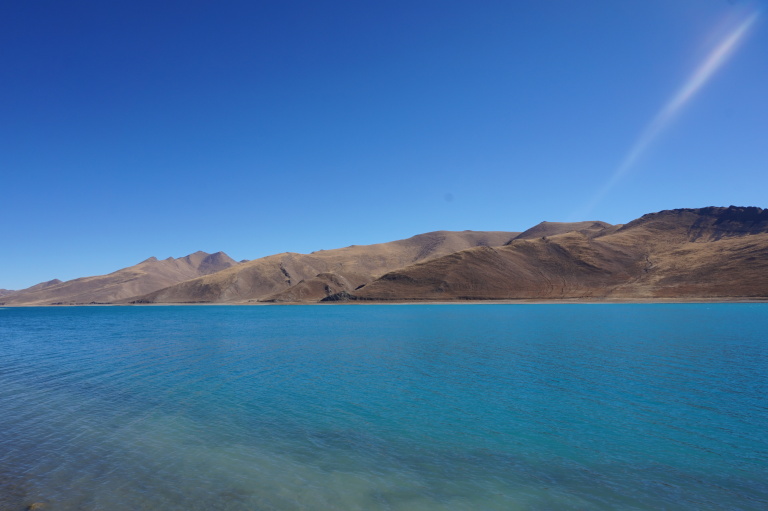 羊湖也是西藏的圣湖,从日喀则返回拉萨的时候经过羊湖,汽车行驶在羊湖旁边的道路上,我就慢慢欣赏羊湖的美景,去的时候还是晴天,所以羊湖的水蓝的不讲理,我们在第一观景台和第二观景台都做停留,我喜欢第一观景台,人不多,很宁静,仿佛自己和天融为了一体。羊湖的长度很长,游客不会从头游览到底,最后的阶段是在山上,在山上俯视羊湖,又会有另一种景象。