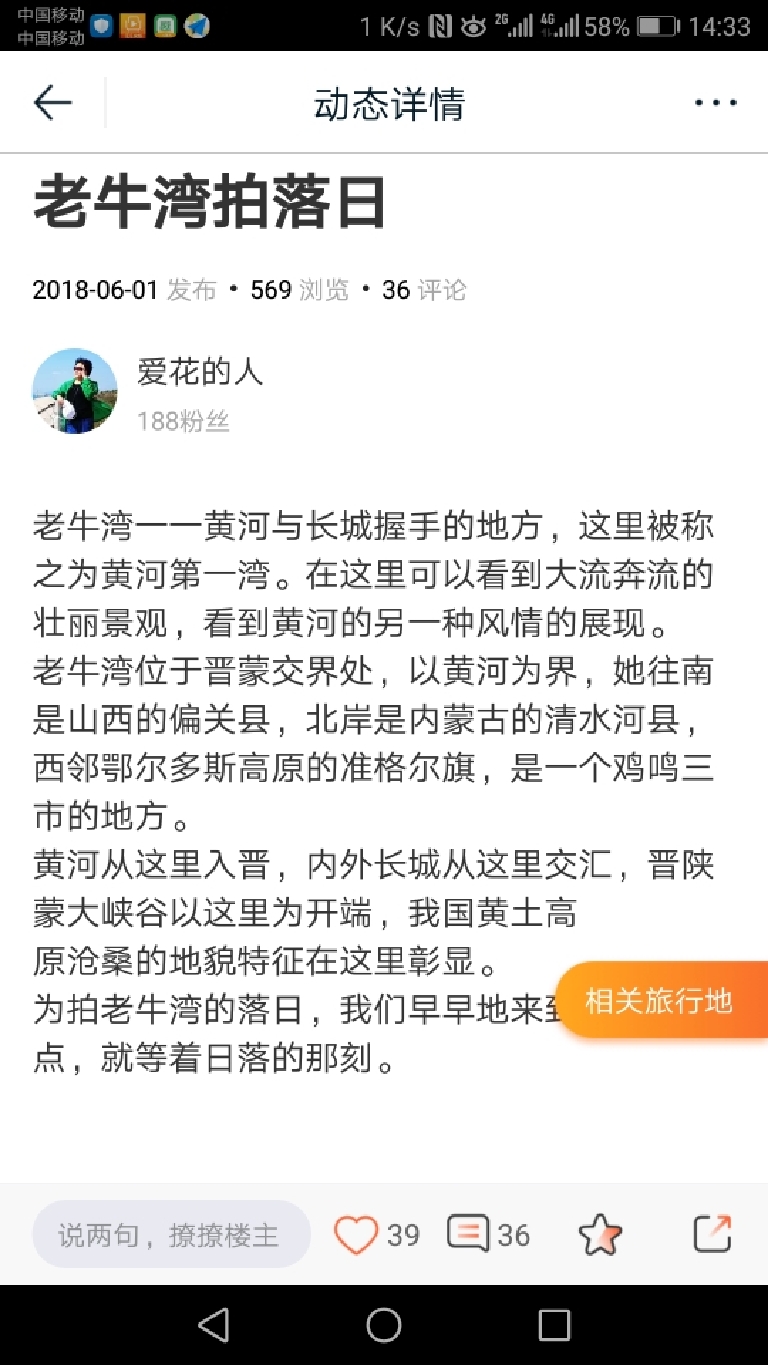 另外在旅游中我还会随时参与途牛网的动态活动和发布旅图,将自已的所见所见和更多的朋友分享。