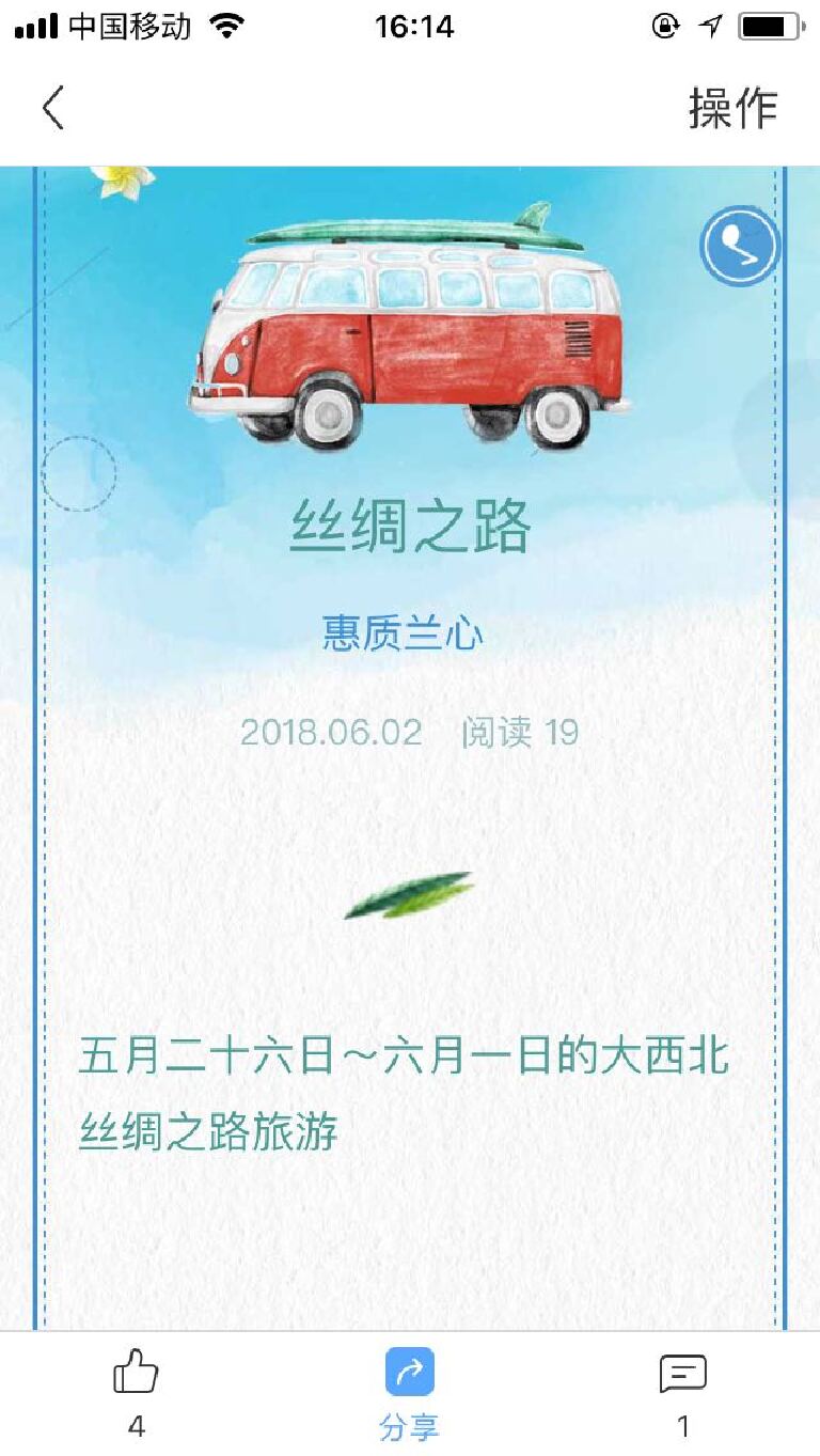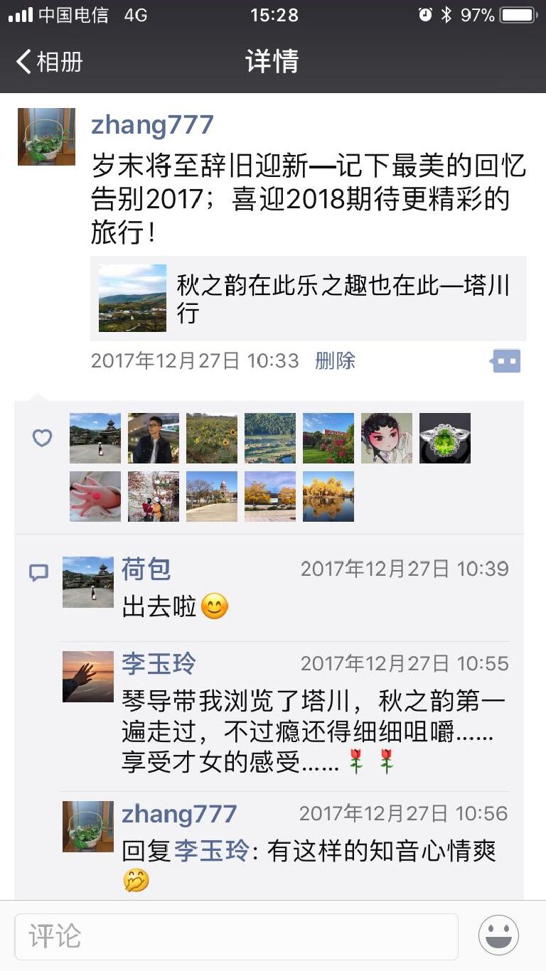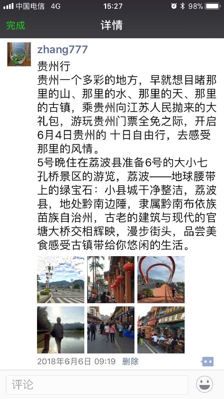 以前每次出游,都会选择性的转发一些漂亮景点,人物照片并配以简单的文字说明,来记录旅游的点点滴滴,以及过程的欢乐时光和美好记忆。