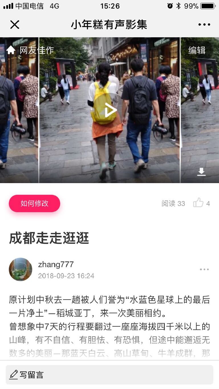 美篇是一种文字,照片,视频互相结合的形式,既可以上传不多余100张的照片,又可以上传不超过五个的视频,还可以充分发挥文字阐述的作用,亦文亦图亦视频的把整个旅游行程,记述得详细,周到,完美。