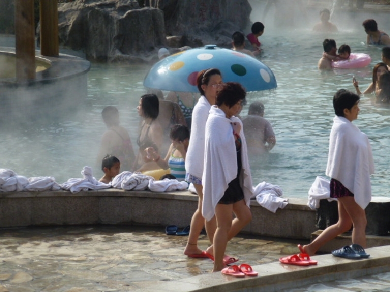 朝日温泉区设有三个圆形露天浴池及半户外式泡汤池、大型游泳池、煮蛋区等设施,游客可自行选择。
