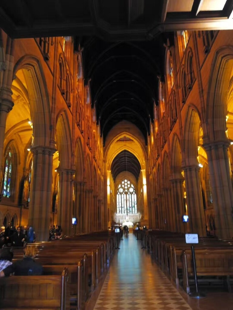 我多次去国外,但我都很少购物。我觉得出去旅游,主要是以旅游观光为主,而商品是那里都能买得到的。只是价格上的差异而已啦。但是这个地方也许你以后不会再来,不看是否遗憾?如在悉尼有半天自由活动,团友们去跟导游去购物了,而我们自已去游览了圣玛利亚大教堂和海德公园。悉尼的圣玛利亚大教堂是澳洲历史最悠久、新州最大的天主教堂,教堂长107米,中心塔高46.3米,气势恢宏,内部庄严肃穆,将中世纪的哥特式建筑展现的淋漓至尽。它始建于1821 年,而天主教神父正式来到澳大利亚是在1820年,因此圣玛丽大教堂又被称为澳大利亚“天主教堂之母”。我们这个选择是不是比购货更有意义呢?