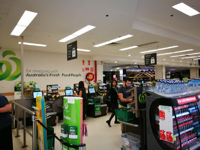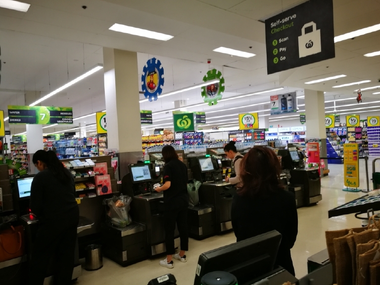 外国超市还有自助收银台(图二,顾客自主操作付款)