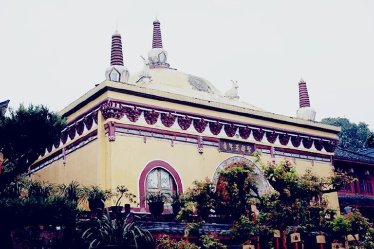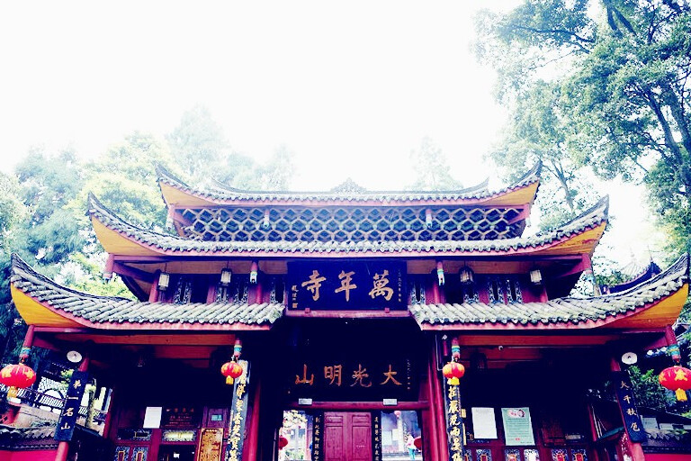 在四川峨眉山旅行时,观赏了峨眉山八大寺庙之一的千年古刹万年寺,这是一个园林式的寺院,而最特色的建筑就是无梁砖殿,整个建筑顶部是一个穹顶,内部没有木梁,有效的起到了防火的作用。