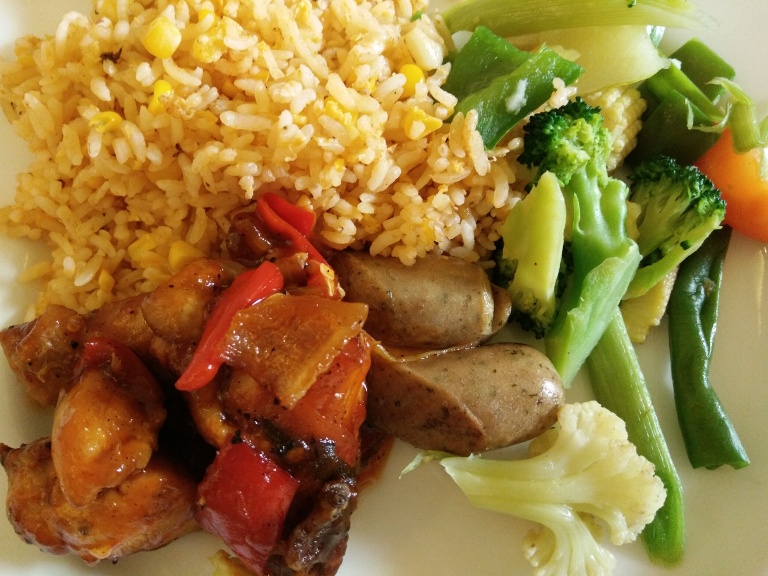 印尼饭的主食就是米饭和面条,搭配各种不同的菜。尽管我很喜欢吃米饭,但也点了面条尝尝。每次吃饭的时候4个人都各取所需吃得很开心。