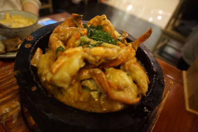 九层塔石锅大明虾:名字挺霸气的,明虾的肉质很嫩,味道很浓郁