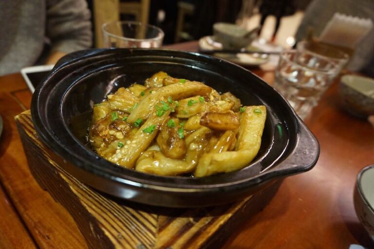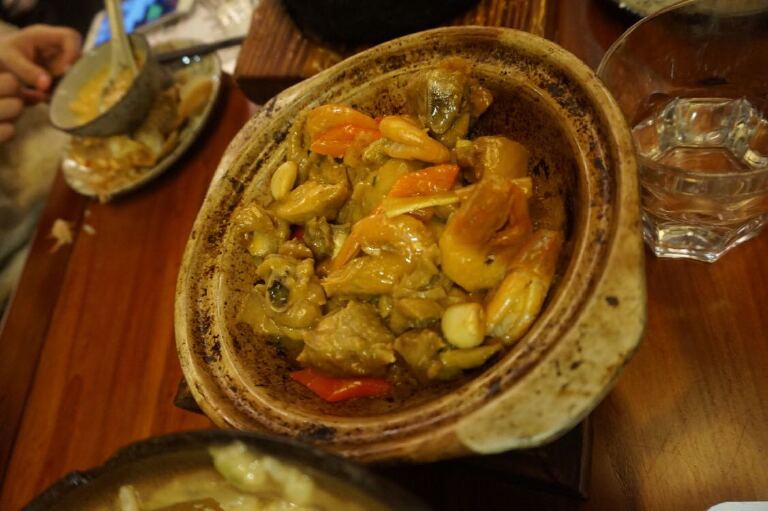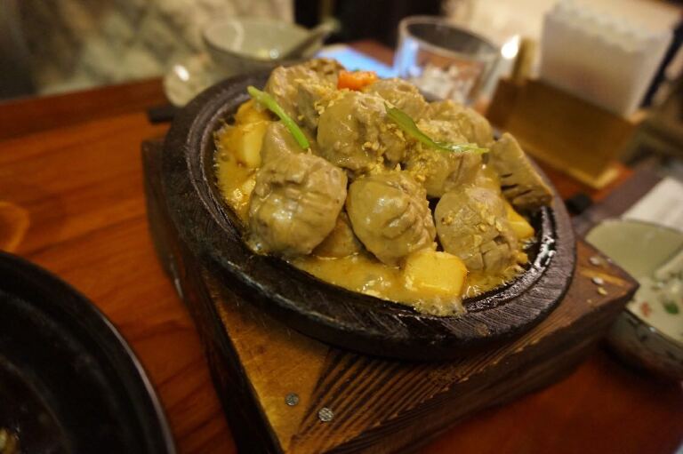 石锅牛肉丸:手打牛肉丸源自潮汕地区,都是手动打出来的,因此牛肉丸很有劲道,潮堂的石锅牛肉丸会将牛肉丸切开,这样味道更能渗入。