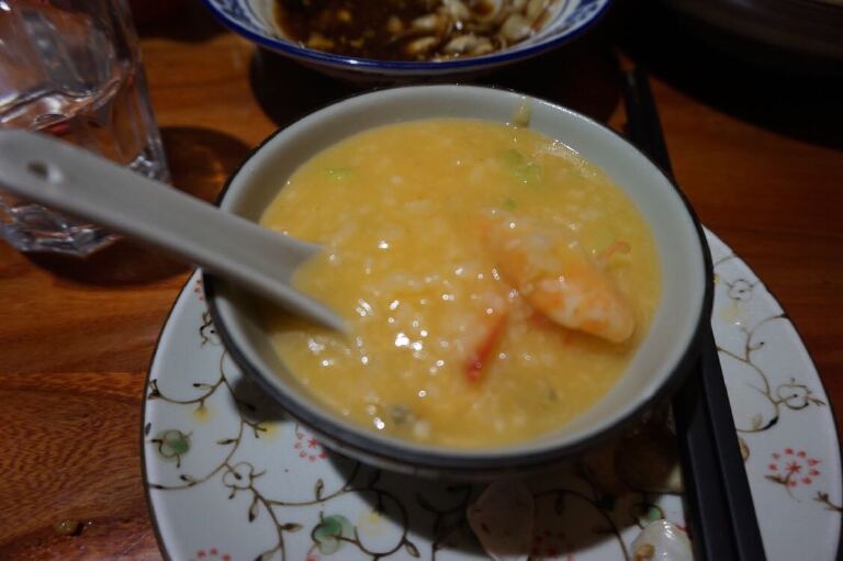 海鲜粥:里面放了好几只虾,味道很鲜,很浓稠,是这家店的必点菜品。