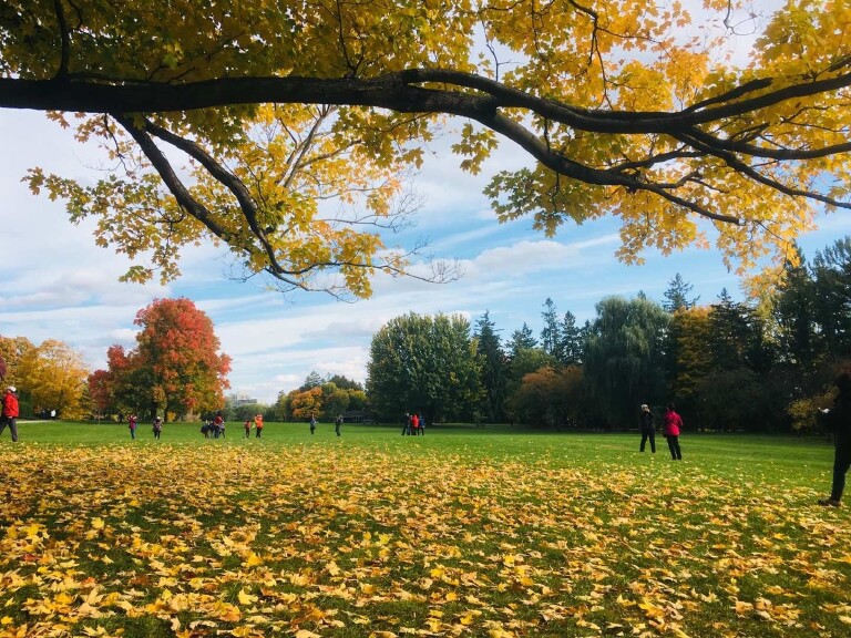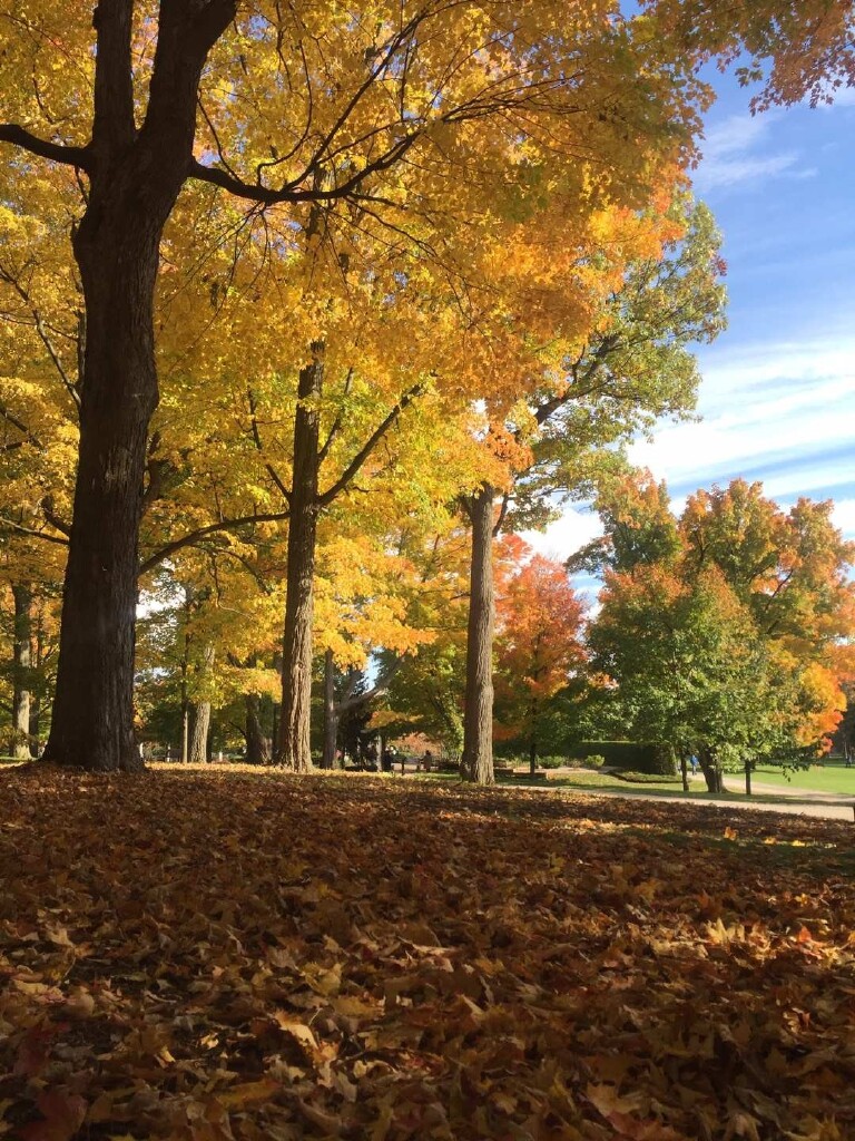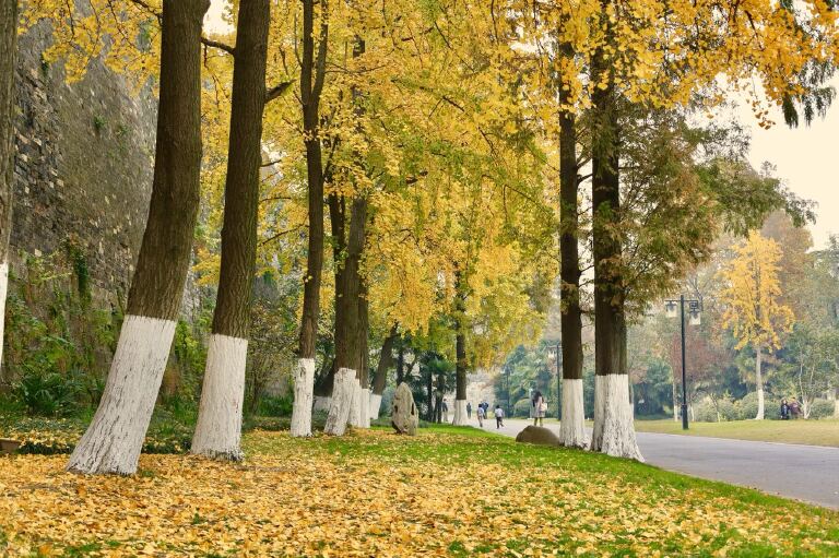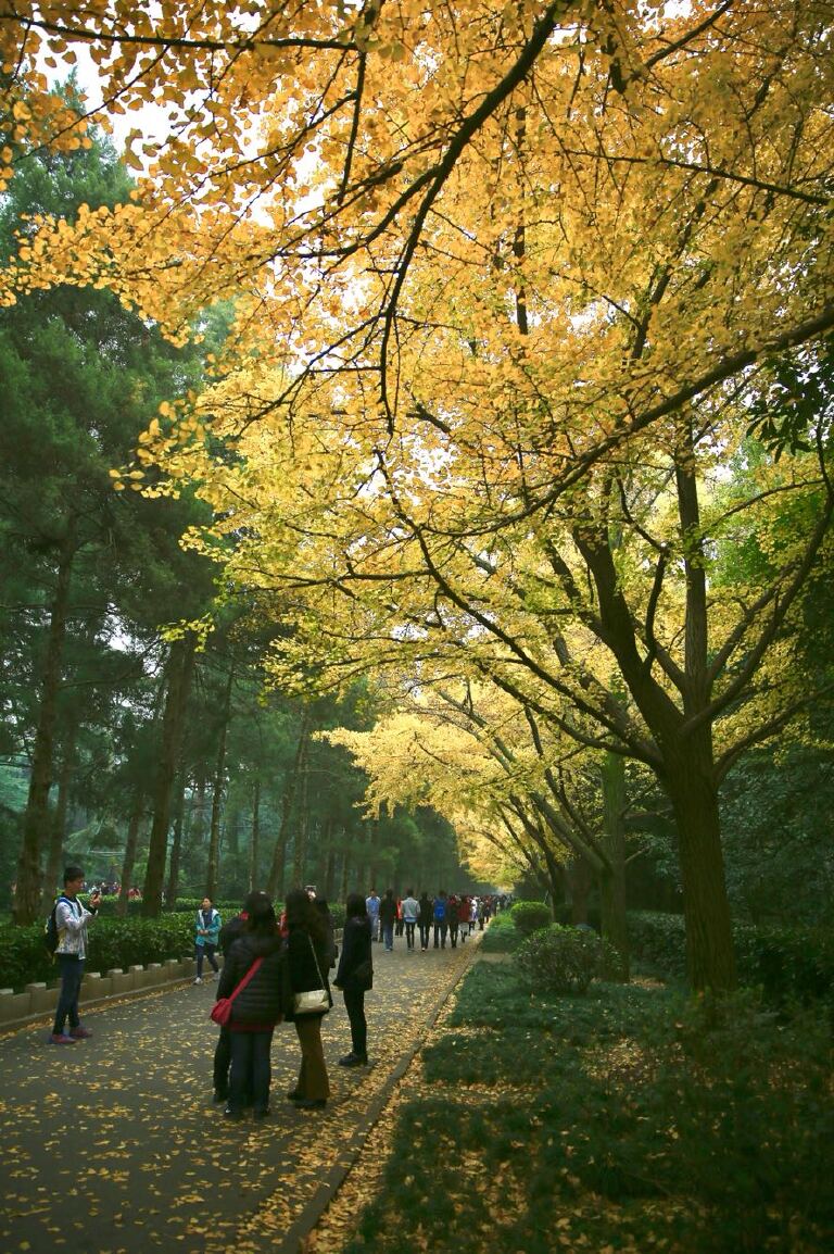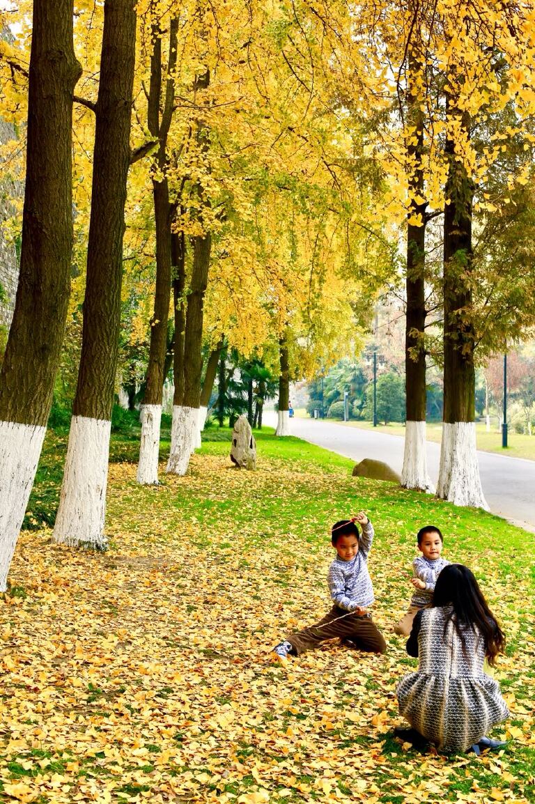 每年我都会去中山陵走一走拍下穿梭在银杏中赏景拍照的身影;我会驻足树下,捧起地上的落叶;我会来到玄武湖,看着那墙城下铺满金色银杏叶大道上欢快奔跑的孩童,因为此时他们再也不会担心脚下有出入玩耍觅食的蚂蚁等小生命;我会到栖霞山捡一片落地的枫叶将秋色带回……。