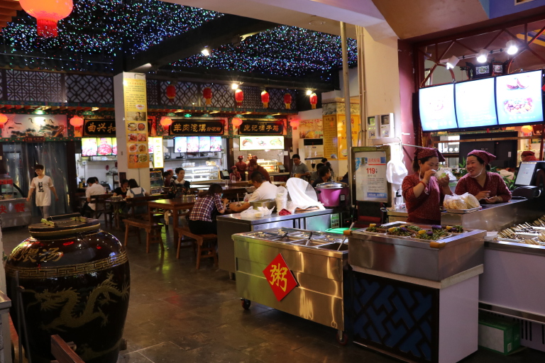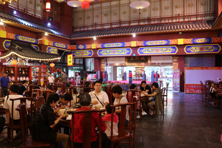 在旅游中去过当地的不少的美食街,上海的城隍庙,南京的夫子庙,台湾的夜市,西安的回民街,厦门的曾厝垵,洛阳的十字街等等,这些美食街都很好。但是总的来讲我认为遇到最好的美食街还是开封的那些美食街。开封有好几个美食街,比如鼓楼食坊,鼓楼美食街,老开封大排档,御河美食街等等,感觉最好的就是开封上河城小吃街。开封是古都,各种小吃美食很多,上了国家著名小吃名录的就有近百种,因此美食街遍布也就不足为奇了。主要的感觉是这些美食街不仅品种繁多,价格便宜,而且服务业很到位。尤其是上河城小吃街,找好座位点好餐,告诉他们座位号,服务人员就会把所点的美食送到桌上。要知道这不是统一管理的餐厅,出售美食的是很多独立的个体摊位。整个就餐大厅装修很漂亮,大厅中央还有个舞台,在大家就餐时还会有免费的文艺节目的演出。游客在此品尝美味的同时还可以欣赏到民间的艺术。在这里就餐不仅是游客,还有很多当地的居民也来此就餐,这就说明了美食城的定价是符合当地人民消费水平的,这样的美食城我只有在开封遇到过。