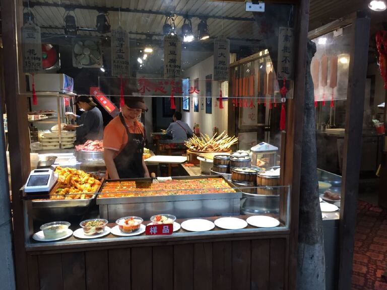 现在各地都有美食街,它也是旅游的一大景点,南京的夫子庙、西安、贵州等美食街,至于坑不坑人,现在都是明码标价,愿买愿卖,所以也谈不上坑不坑,只有是贵不贵,我觉的贵州的物价很贵,美食价格也很高,而成都美食又多,价格、口味都不错,九月底去了一趟成都,在宽窄巷子、锦里大饱了口福,无论是品种、价格都让人赞叹,特别是锦里,地方之大、街道之长、美食之多,让你应接不暇 ,真可谓吃货的天堂,你可以手捧小吃,边吃边逛看看街景、看看琳琅满目的商品;你也可以坐在茶楼、酒吧、酒楼,边吃边欣赏地方的特色表演,你可以尝尝三大炮,并感受一下制作时听发出的三响、可以品尝一下钵钵鸡、肥肠粉、凉糕、串串、糖油果子……。成都的美食真的是品种繁多,价廉物美,让人流连忘返。