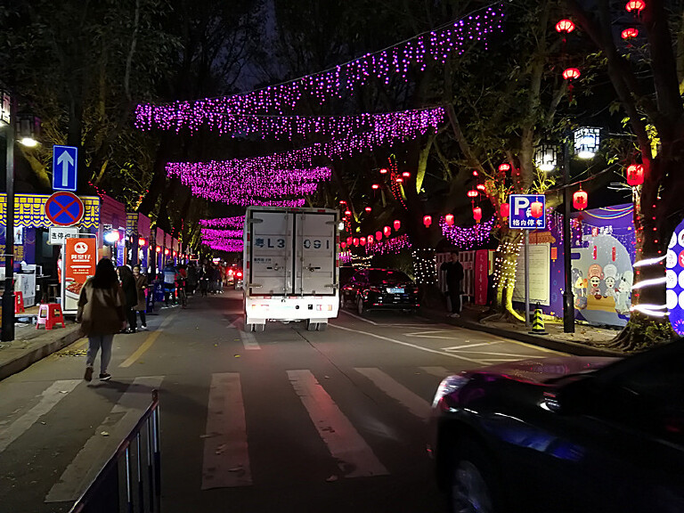 吃饱喝足正好太阳也下山了,补足了能量正好拍照。拍了一圈回来小吃街夜市也开始了,不过灯会还没开始(12月29日开灯,一直到春节过后),还没到特别热闹的时候。