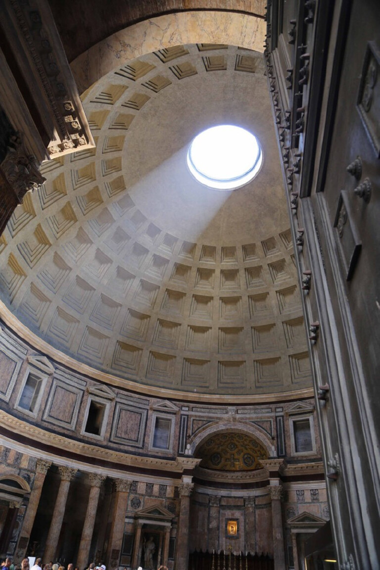 去过意大利,古老的罗马、美第奇时期的佛罗伦萨、水城威尼斯、时尚的米兰,那里的很多建筑令我至今难忘。在罗马,古老的斗兽场、许愿池、凯旋门等等很多的古建中,给我印象深刻的是万神殿。万神殿是至今完整保存的唯一一座罗马帝国时期建筑,始建于公元前27-25年,用以供奉奥林匹亚山上诸神,可谓奥古斯都时期的经典建筑,其外观极具气势,万神殿的穹顶有8米多宽,没有柱子做支撑,阳光射入顶部的圆孔照进殿内,还起到了计时的作用,很有特色的一个建筑。