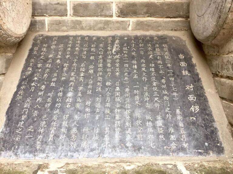由于寿县的重要地理位置,古人为了防御战争而建了此城墙,而由于地理位置的缺陷会引发洪水,所以后人又为了防洪进行了加固,因此人们这样描,“因战争古人建了这座城,因洪水后人保存加固了这座城”。也有许多妙趣横生,广为流传的典故“当面锣对面鼓”就出自于此。当你对古城墙略有了解后,再登上城墙吹着凉爽的风,想想着那以少胜多,以弱胜强“淝水之战”的古战场,想想着洪水来临时人们不再恐惧的心情,不禁赞叹古人的伟大更为现代人的智慧而自豪。