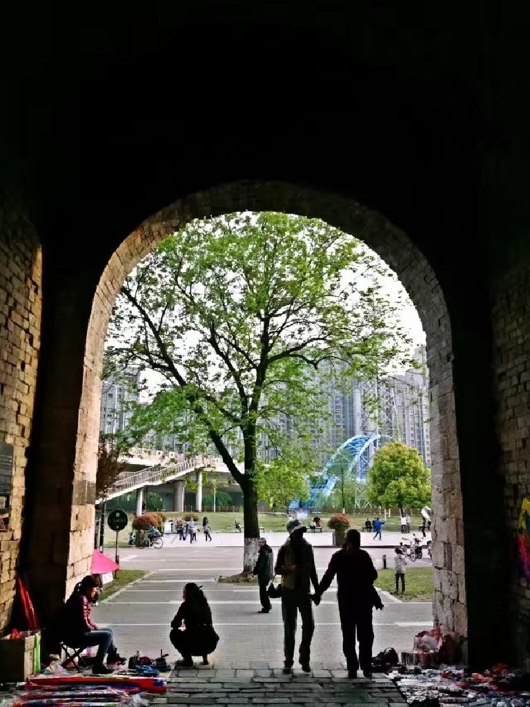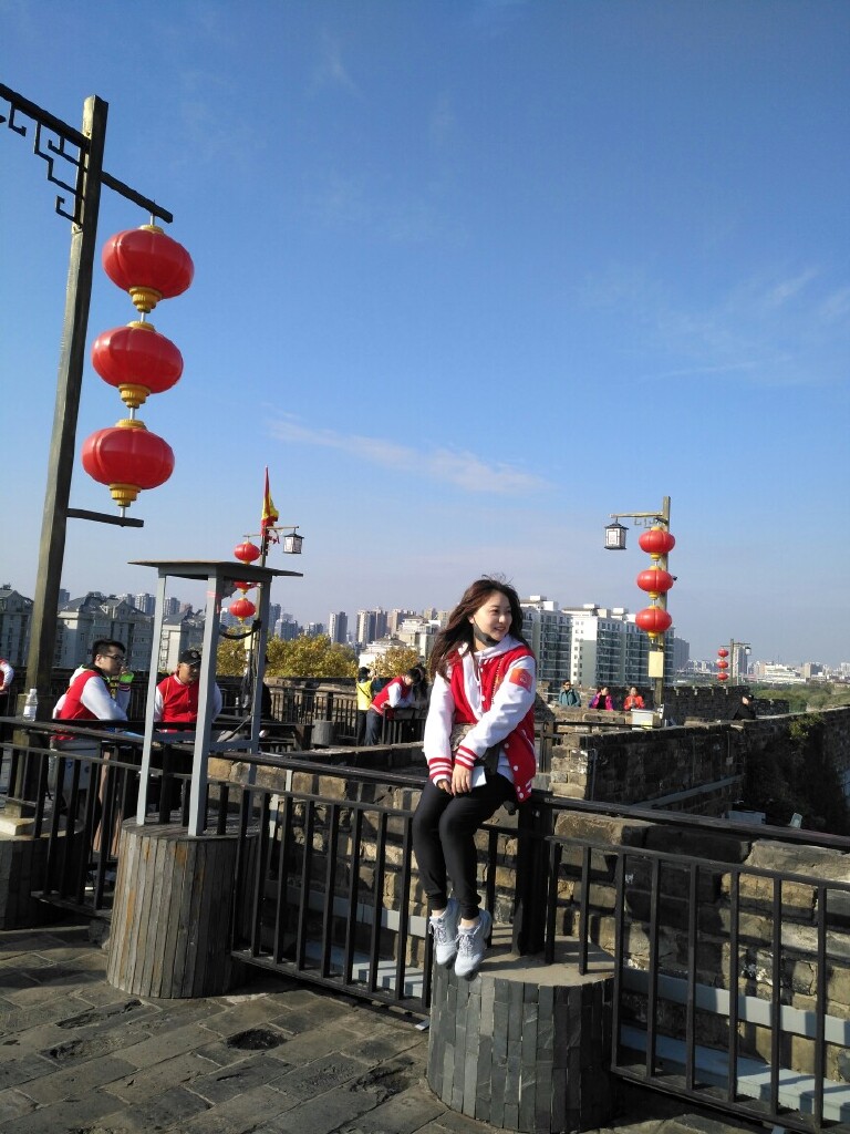 我有去过南京的中华门明城墙。听导游说,中华门,原名聚宝门,是南京明城墙的十三座明代内城门之一,是中国现存规模最大的城门,世界上保存最完好、结构最复杂的古城堡,有“天下第一瓮城”之称。导游说,明城墙耗资600万两黄金,相当于现在的480亿人民币。明城墙建成用时28年,中华门城堡城墙就耗时7年。我们沿着直达城顶的楼梯,拾级而上(台阶的两侧是平坦而宽阔的马道),来到了城墙的顶上,顶上十分空旷,之前,这里曾经有一座十分雄伟的敌楼,可惜已经被日本人炸毁了,在他的位置上摆着礌石(明朝时期防守城门的主要兵器之一,是用青石凿成的大小不一的圆石),二门大炮,加六个古时作战的器械模型(石弩车,巨型车弩,抛石机,巨弩车又称纽力车,多发车弩,狼牙滚石),站在明城墙上往东南处眺望,可以看到不远处的大报恩寺遗址公园里的大报恩塔塔,顺着了望孔往南望去,美丽的金陵风光尽收眼底,秀丽的雨花台山峰连绵,清澈的秦淮河,水波荡漾,不时有游船经过。我们沿城墙往东走了一小会,东北方向的老门东,那片蓝顶白墙的建筑群,便一览无余。导游说,当时为建明城墙,朱元璋将江浙一带的首富,都接到老门东来住,然后让他们掏钱,其中有个叫沈万三的,出的钱最多,有二百万两黄金,占明城墙总金额费用的三分之一。那天我们登明城墙,正好是“”2018年路走竞速联赛----南京站“”,所以城墙上很是热闹,这不,有位小美女坐在城墙上摆pose,很是上镜呢,另外,我们在中华门明城墙上还看到一个人,正在拓城砖上的字,说是公家用来收藏的。我们仔细看了一下身边的墙砖,的确,仔细看去,有好些字都有刻在城砖上,它记录着明城墙600多年的历史沧桑。