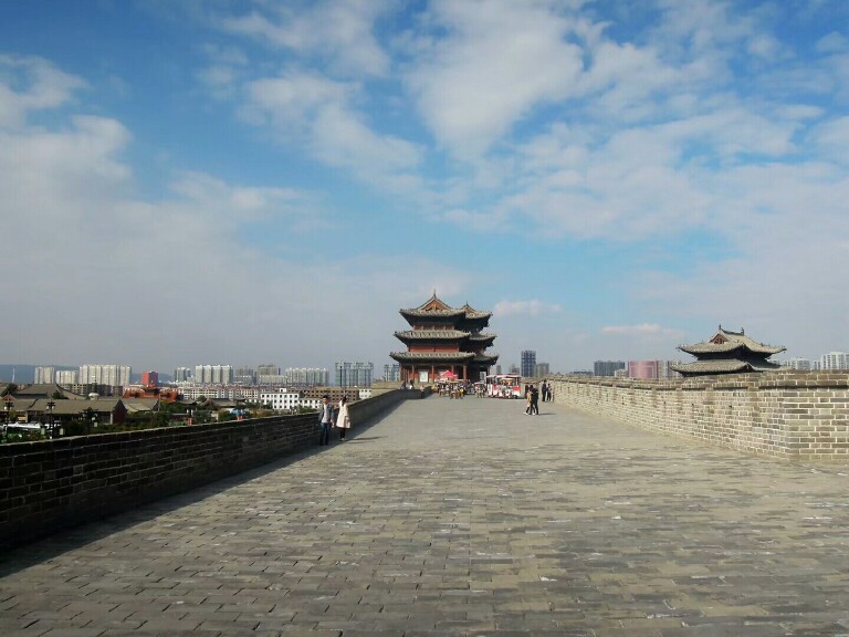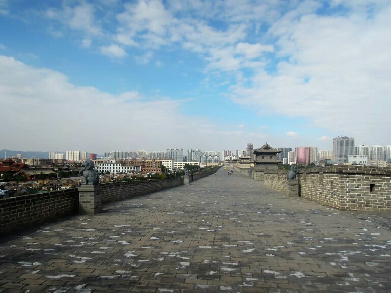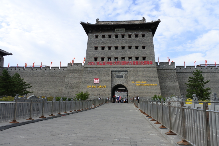 大同曾为北魏都城,当时已修筑有规模宏大的城池,现存大同城墙为明洪武五年(1372年),大将军徐达奉命依辽、金、元旧城基础增建起来的,略呈方形,东西长1.8公里,南北长1.82公里,面积3.28平方公里。建有主城门和阳、永泰、清远、武定四座,同时还建有护城河、吊桥、城楼、箭楼、月楼、乾楼 望楼、角楼、控军台等一系列军事设施。08年起因古城墙夯土墙体遗存较好得以修复,极大地保证了建筑的原真性,让今天的你我能一睹其风采,另外,城内仍存有古民居,有华严寺、九龙壁,清真大寺等景点。