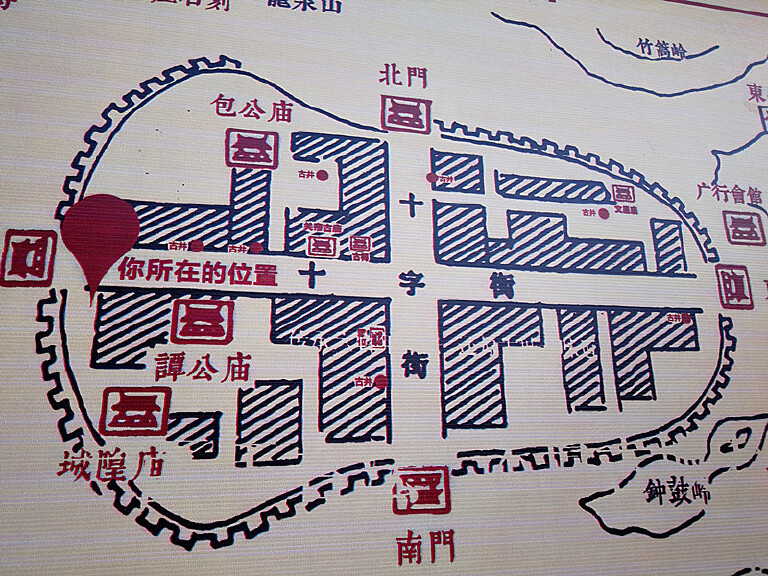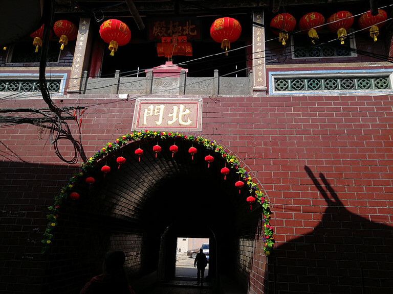 我们从西门进入古城,沿着十字街向前走,十字路口有一间“关帝古庙”,再向前走是东门。