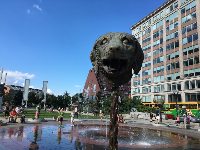 “自由之路”是一条由红砖铺成的道路,起点始于美国最古老的波士顿公园,全长2.5英里,将波士顿全部16处历史文化遗迹,像珍珠项链一般的串联起来。漫步于“自由之路”,可以畅游波士顿城市风光,还能进一步了解美国历史起源。我们时间有限,只走了一小段路。