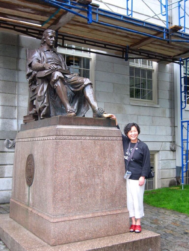 哈佛大学建于1636年,是美国最古老的大学,比美国作为独立国家的建立几乎要早一个半世纪。美国有史以来的45位总统中,有8人出身于哈佛。呵呵,哈佛铜像的左脚尖格外锃亮,据说摸过此脚的人可以金榜题名,所有仰慕者无一例外都要摸一摸。
