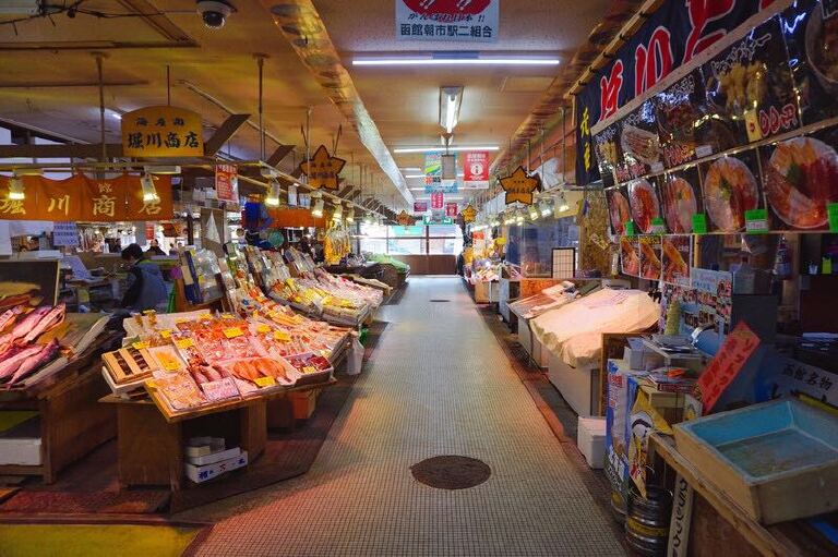 东京和大阪的相信有人会写的,我就写写北海道的吧,北海道比较有名的美食街有札幌的狸小路(也是购物街),还有函馆的函馆朝市,我来说下函馆朝市吧。函馆朝市是北海道最热闹的集贸市场之一,函馆朝市是整块地区的统称,主要由函馆朝市、站二市场和外圈的私人商铺所组成。整块区域不是很大,但是每天早上都很热闹,在这里可以看到,品尝到北海道最新鲜的海鲜,海鲜的品种非常多,帝王蟹、三文鱼、扇贝、海胆等海鲜最受游客欢迎;也可以购买一些海鲜制品带回去送人,比如鱿鱼干、干贝,海鲜酱。这里的大部分商家营业时间是到中午12点,少数的营业到下午2,3点。