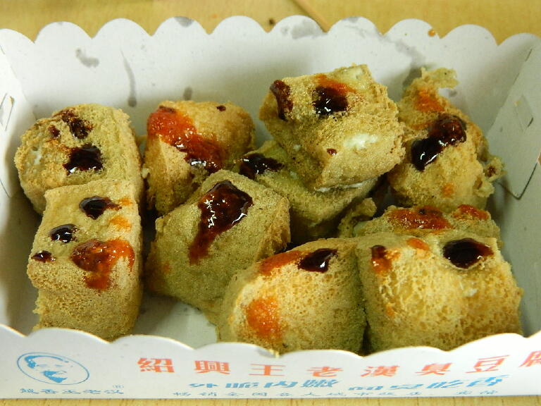 绍兴最有名的美食是梅干菜扣肉,梅干菜是绍兴一种价廉物美的食材,也是绍兴的著名特产。梅菜扣肉虽然是一道广东客家菜,但是梅干菜是绍兴的特产,所以来到绍兴也一定会品尝这里的梅菜扣肉,我是在鲁迅故里景区旁的“一石居”吃的,红烧肉扣在梅干菜的上面,梅干菜的颜色颇深,红烧肉的颜色正好,我很喜欢红烧肉的肥肉部分,入口即化。要说到小吃的话,当属臭豆腐和奶油小攀了,绍兴的臭豆腐是金黄色的,臭豆腐闻上去很丑,但是吃上去很香,吃的时候需要加甜面酱和辣酱。而奶油小攀是绍兴的经典美食,吃的都是回忆,位于新建南路608号的“高老太奶油小攀”,绍兴人都知道,这家店已经经营了50多年的奶油小攀,店面不大,但是很容易找到。奶油小攀5元一个,奶油小攀可以分成3个部分,顶部白色的像是奶油,但中间部分是软黄色,应该是打碎后的杂粮,味道比较淡,底部相当于一个,挺脆的,奶油小攀要趁热吃。