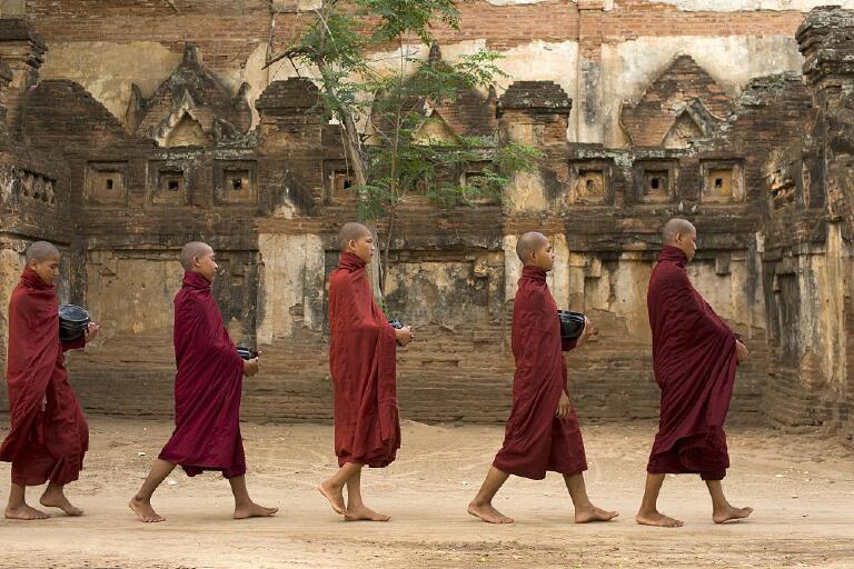 其次,在缅甸僧人化缘是非常常见的盛景。缅甸人似乎已经习惯了这种布施化缘的生活。在城市里,你会看见许多小和尚抱着饭钵安静地等候着群众的施舍。这种单纯善良的美好值得每位游客细细感悟。