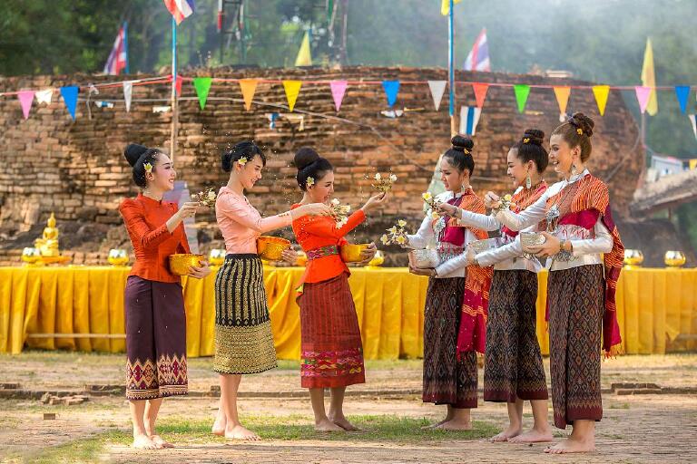 最后,缅甸也有许多关于佛学的节日或祭祀。其中最出名的就是泼水节(又称浴佛节),大概在每年的4月中旬举办。在这天缅甸人会向寺庙和僧人施舍许多的食物和日常用品,同时大家都会用澄澈纯净的清水相互泼洒,以示祝福。