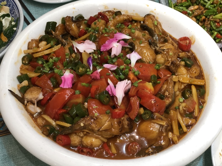 椿记烧鹅是桂林及阳朔地区一家非常具有人气的餐厅,获得过数不清的奖项,几乎每个时间段都是要排队的,我们可能去的时候比较特殊,是开学第一天,所以人不多,拿好号到了五点就直接进去,就餐区域在二楼,餐厅面积蛮大的,整洁干净,让我更满意的是他们家的服务,每个服务员都是微笑着服务,给我一种宾至如归的感觉。必点的菜当然是烧鹅,二个人吃烧鹅点的小份的,配有蘸酱,味道中等偏上,表皮很脆。辣椒炒肉,蛋黄茄盒的味道也不错,点心选择了流沙包,上面还印有椿记流沙包的字体,里面浓浓的流沙让食客非常满足。人均消费70元,也难怪去桂林和阳朔的游客都会品尝,性价比的确很高。