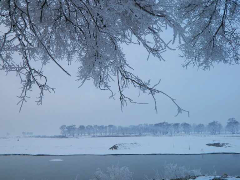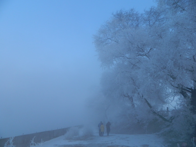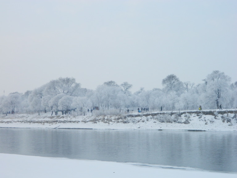 漠河也不定算最冷吧,在东北,数字显示出来的温度和体感不完全对等,比如我去哈尔滨的雪乡雪谷, 就远不如吉林的雾淞岛冷,特别是早上起来看雾淞,早饭还来不及好好吃,身体凡是稍有露出来的地方都被冻僵了,帽子也被结冰了似的,能在室外呆得一两个小时已经算不错,不过,为了美美的雾淞奇观,还是非常值得的,看雾气重锁中的松花江,四处白茫茫,冰封之下河水急喘,待雾气渐消散之时,方可看清眼前的玉树琼花,雾淞的最佳欣赏时段,也就一小时,“忽如一夜春风来,千树万树梨花开“之意境最贴切不过,中国四大奇景之一,名不虚传哪。