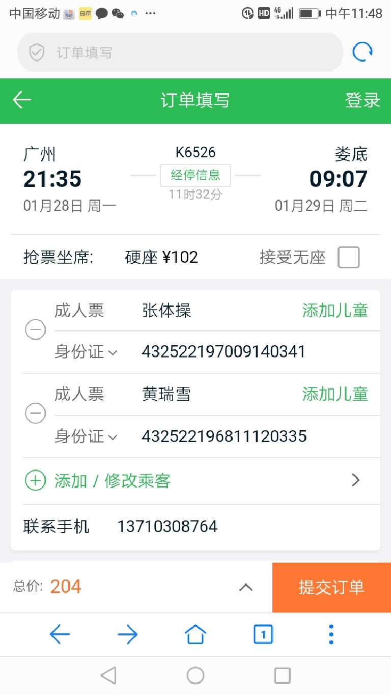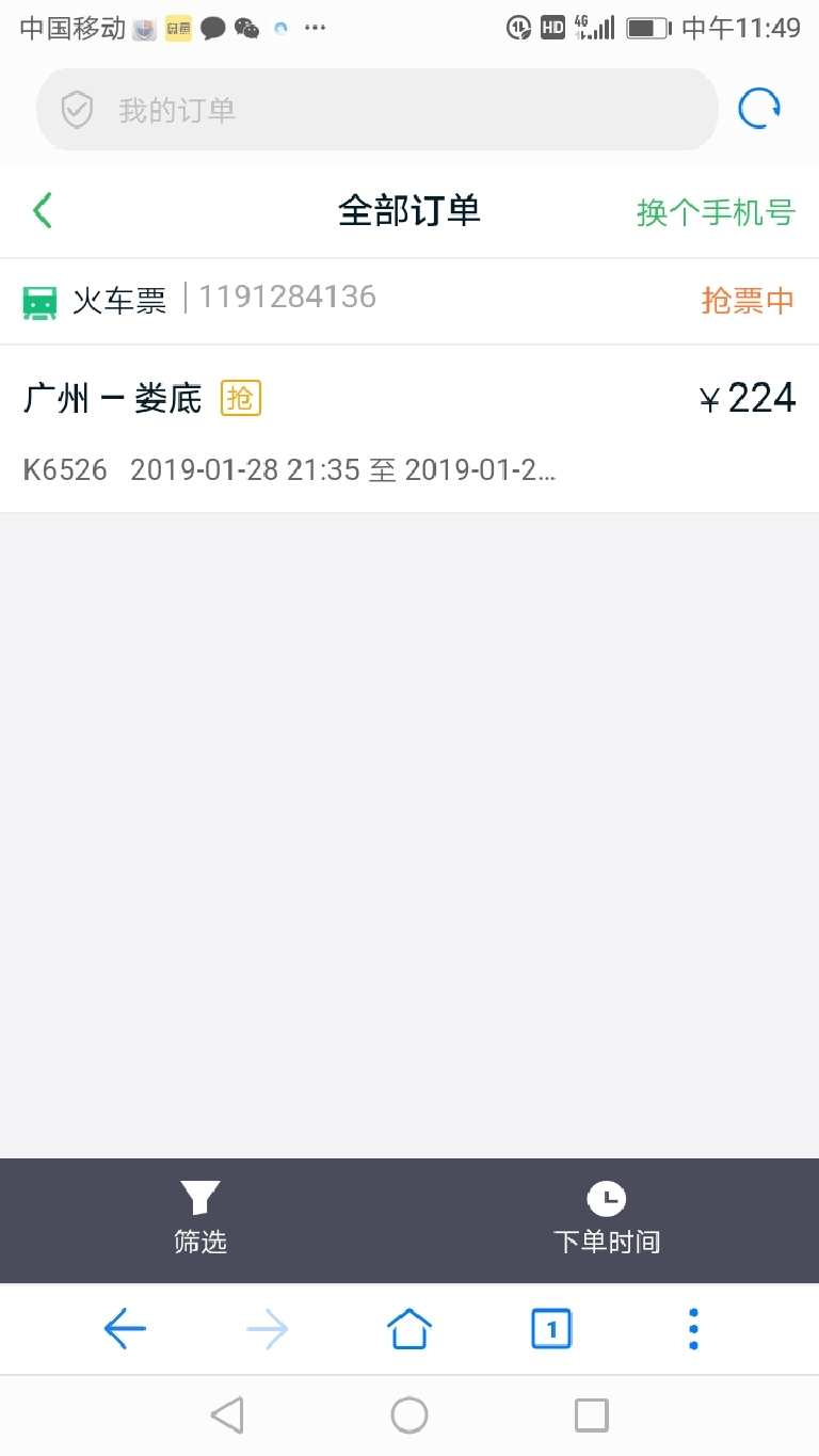 查询火车票,我刚刚买的不知在哪里查,广州至娄底,晚上9:35分的票