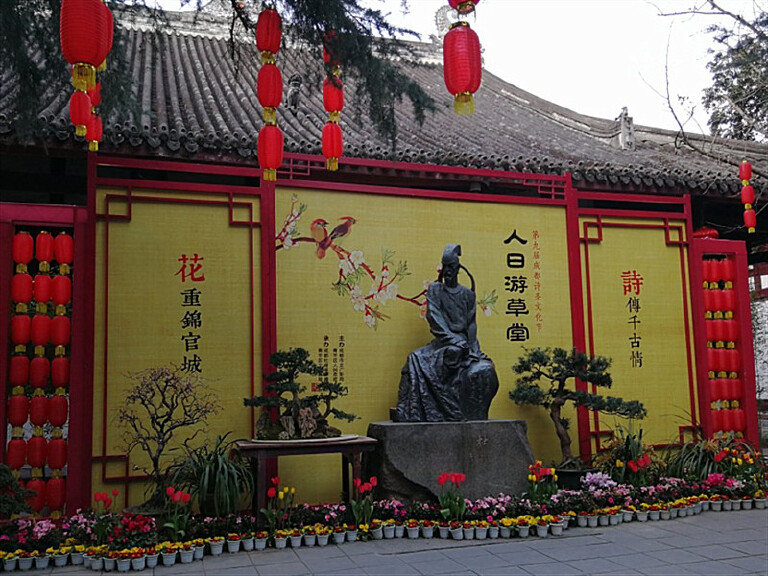 在成都,每逢正月初七,市民都会一大早就偕妻将子,或呼朋引伴,前往浣花溪畔的杜甫草堂,祭拜诗圣杜甫。我和老伴儿也在“人日”来到杜甫草堂。你知道什么是“人日”吗?据《荆楚岁时记》载:“正月初一为鸡,二日为狗,三日为猪,四日为羊,五日为牛,六日为马,七日为人”。“人日游草堂”活动的风俗已成为成都市和四川省的非物质文化遗产。