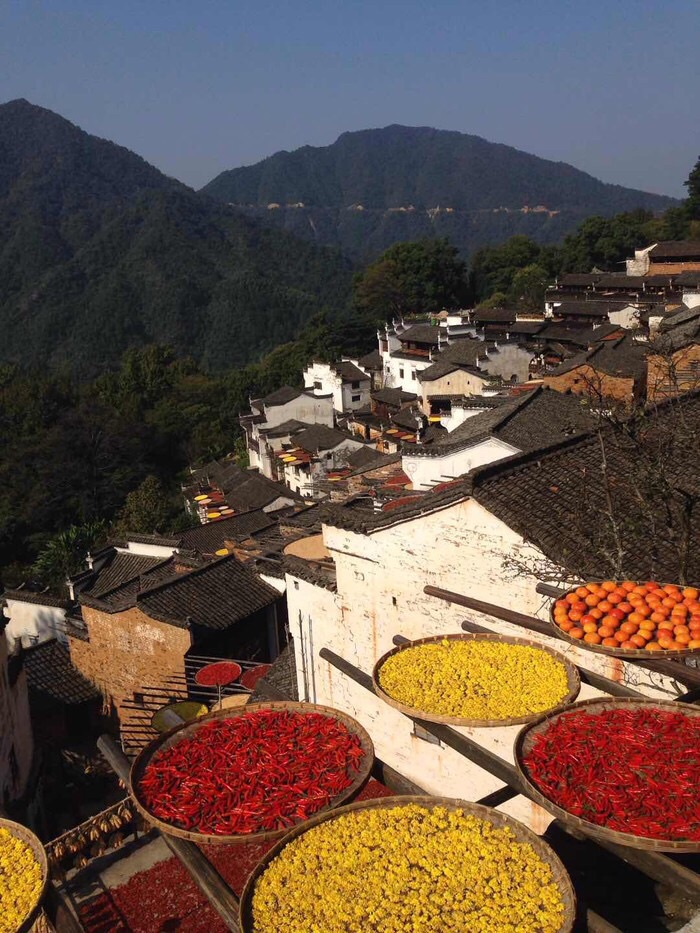 你可以到深藏大山的“长溪古村”饱赏深秋时的枫叶的火红,白墙黛瓦马头墙的民宅与红枫交相辉映,宛如一幅幅浓烈的油画;你可来到篁岭古村,看到挂满枝头的果实,以及挂在山崖错落搭建的民居,确实有着江南“布达拉客”的感觉,村民将农作物用竹匾晒在自家眺窗前木架上,一道五颜六色的“晒秋”画面呈现在眼前,一派丰收景象;秋天的浓雾是春天没有的,晨雾笼罩的月亮湾更是变化无穷。仿佛海市蜃楼、仿佛人间仙境、漫步其中仿佛置身于长长的水墨画廊……。