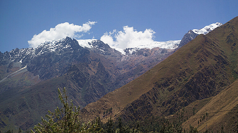 小火车晃晃悠悠沿着乌鲁班巴河行进在安第斯山脉的崇山峻岭中,沿途风景非常美丽。但小火车摇晃的很厉害,每一张照片都得拍多次才能成功。开着开着安第斯山脉的比罗尼卡雪山(UERDNICA)映入眼帘,还有庄稼、牲畜和小村庄。