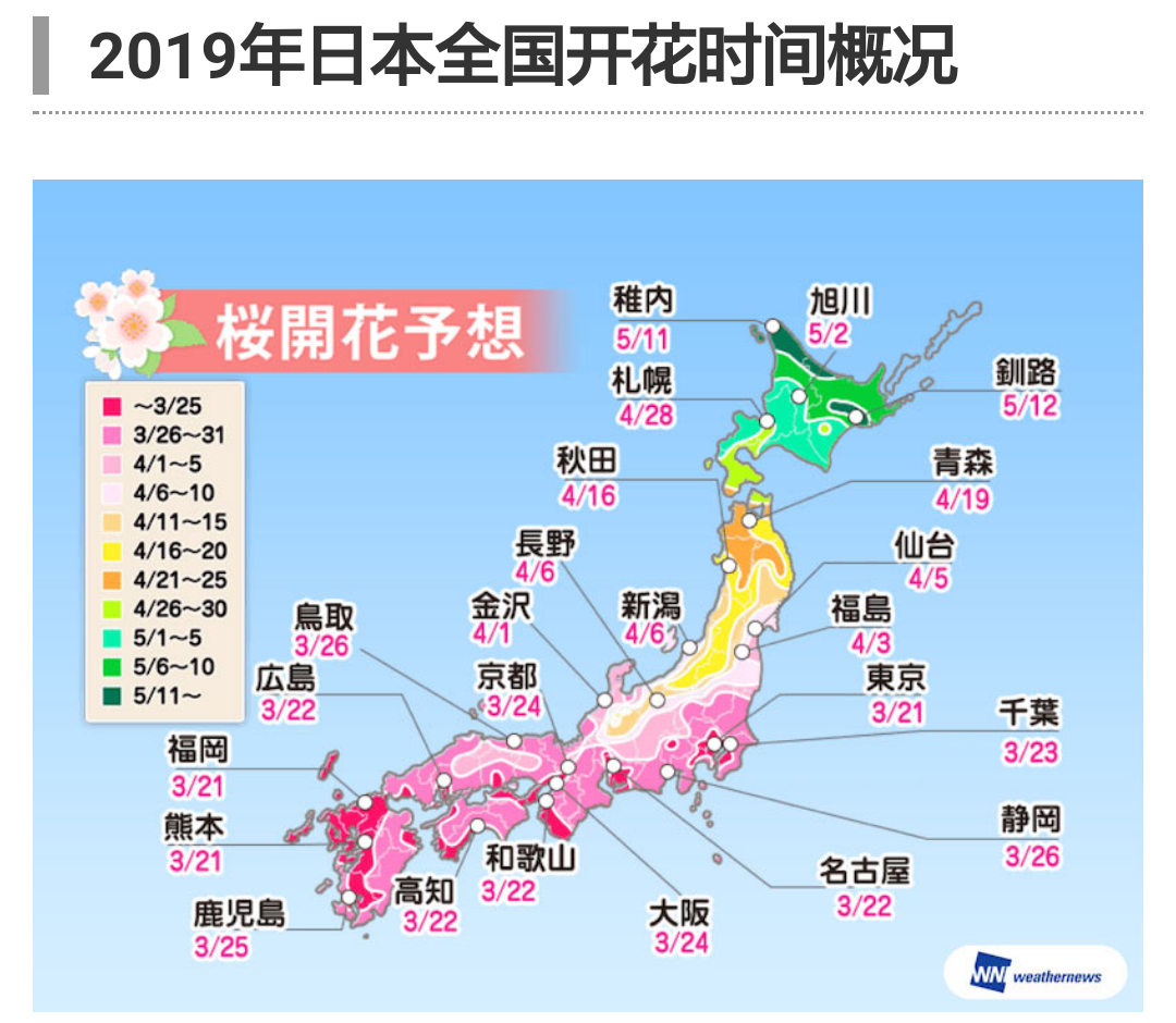 2019年第三次,日本樱花开花预估时间,你去北海道的话,可以做参考。