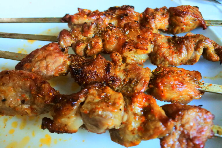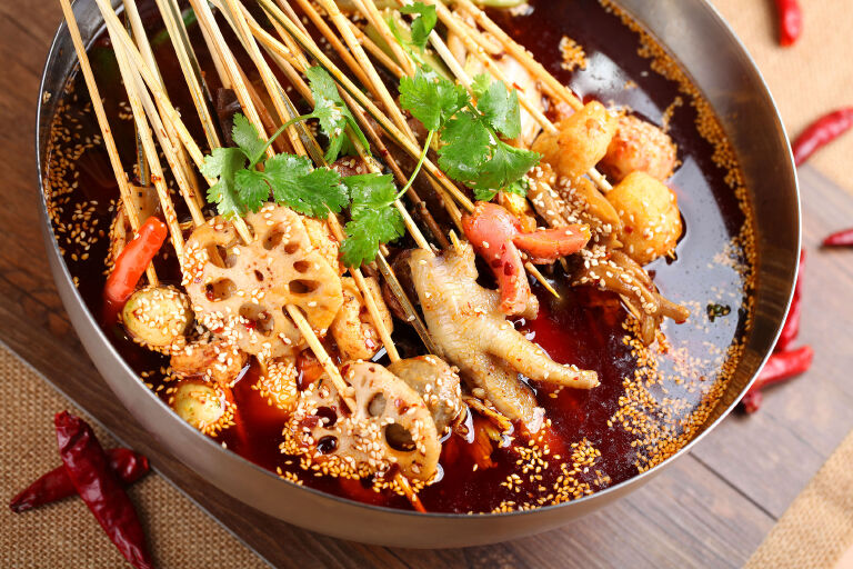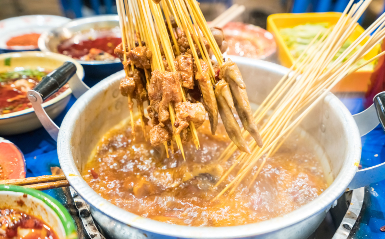 要说美食,还是首推国内了,在我印象里,成都是给我印象最深刻的地方,满街都是进了就不想拔腿的食店,但如果只能选一样,我选的必然是冒菜,榕树下冒菜不愧是当地人力推的品牌,活色生色,我只尝了肥肠冒菜这一样,就赞叹不已,肥肠有嚼劲,配料香辣,吃得实在过瘾;新疆羊肉串,众所周知,但新疆之外吃到的,完全不能比,而且在我吃过的,数吐鲁番的最够味,也许是原料的不同,又或者配料的有差,那里的羊肉串不仅肉多,还带着点肥肉,口感好,味道赞,是一种幸福而满足的味道,还有那里的甜瓜,说比蜜还甜一点也不夸张,只有尝过,你才能明白。到青海湖旅行时,无意住进藏族人新开的帐篷旅馆,和出席开张庆祝活动的人们一起用餐,他们弄的羊肉汤,从汤到料,都非常出色,毫无膻味,从来不知道,羊肉还能这么香。最后要提的是,兴义万峰林的蛋炒饭,本是道平常的菜,但也许是山里的米特别的香,如此简单用料的做法,味道是出奇的好,成了万峰林景区出名的菜品之一呢。