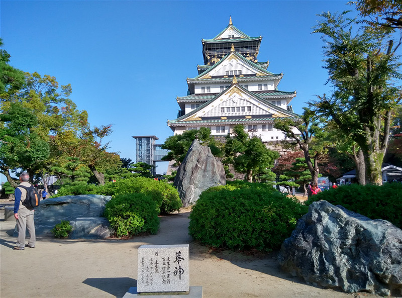 历史悠久的大阪城,由丰臣秀吉于1586年所建,陡峭的高达20米的城墙使用了从日本国各地运来的巨石修砌而成。高陡的城墙和宽阔的护城河构成的壮观景象是其他任何一座日本古城都无法与之相比的。大阪城公园内广栽各种树木,有风景秀丽的庭园和亭台楼阁。