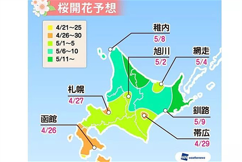 现在这个季节你可以去北海道,4月底5月初是北海道的樱花季,比本州岛的开花时间晚了一个多月,届时樱花爱好者都会在这一时间段去领略“樱花之国”最美的春天。