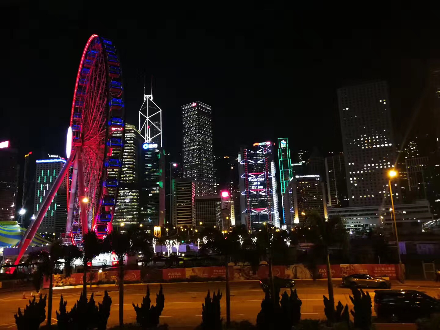 维多利亚港的尖沙咀区域,可以游览星光大道,星光大道经过一段时间的整修后,现在已经重新开放了;维多利亚港的湾仔区域,可以游览香港的紫金花广场,可以看到香港回归的纪念碑;维多利亚港的中环区域是我最喜欢的,因为在那里有一个摩天轮,香港的中环摩天轮是一个地标建筑,我是在晚上去体验的,游客人数不多,乘坐摩天轮,居高临下的欣赏维多利亚港的夜景,摩天轮的门票现在降低到20港币了,以前我去的时候还是100港币呢,根据游客人数会调整转速,我去的时候转了3圈。