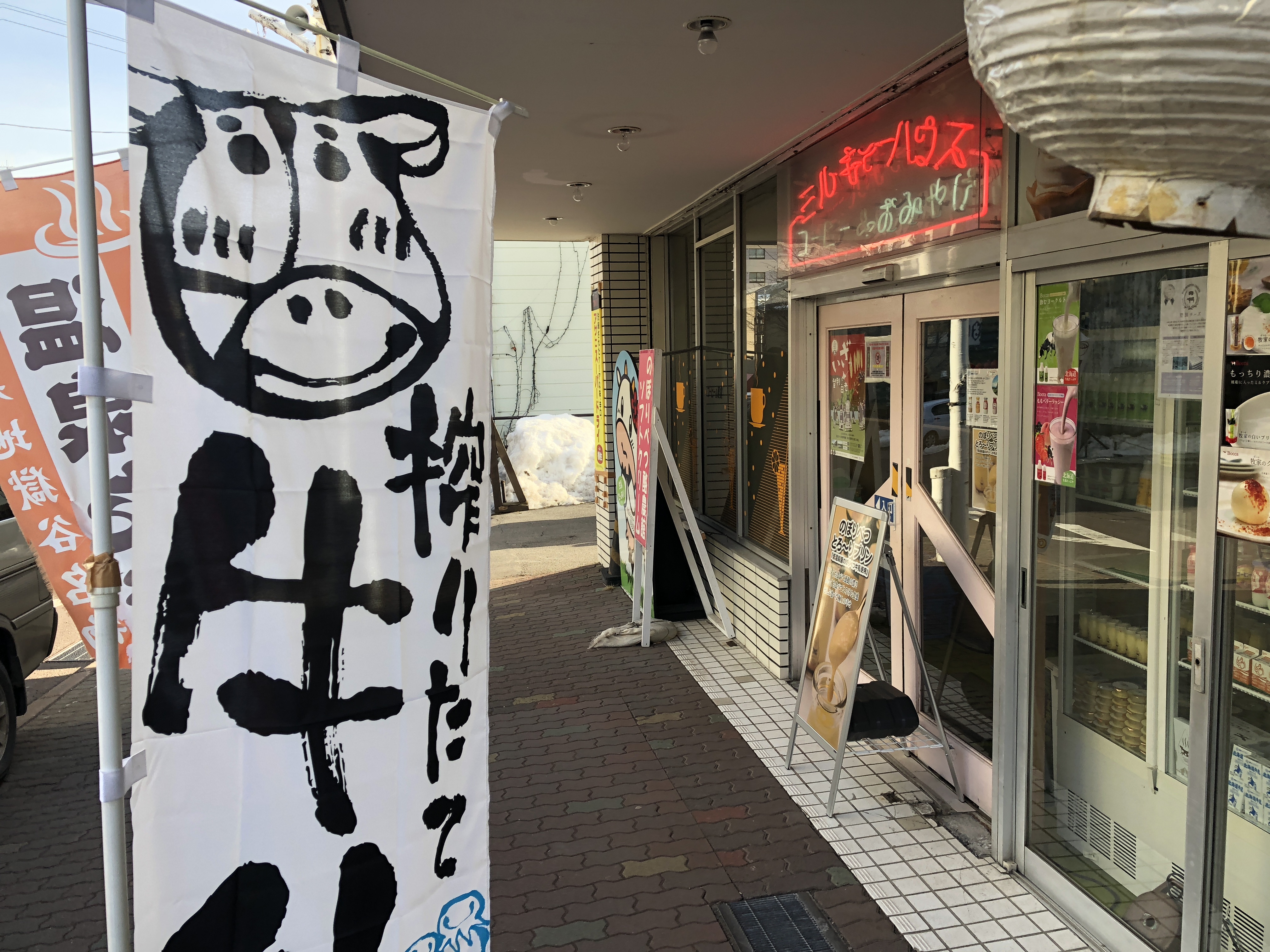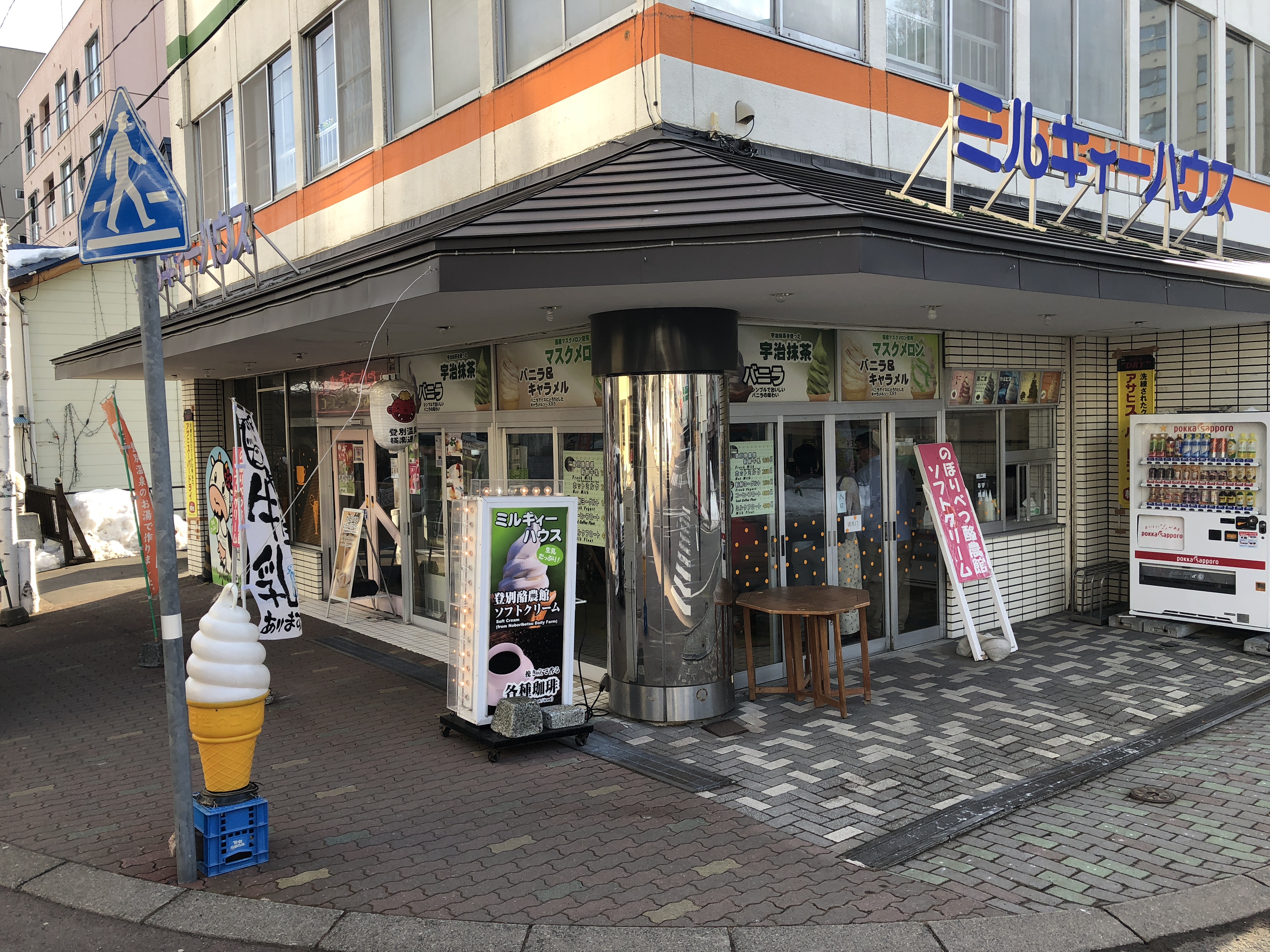 北海道的特色美食很多,北海道牛乳,北海道的幸运小丑汉堡,北海道函馆朝市的海鲜,北海道烤肉,拉面等等。我之前一直说北海道幸运小丑汉堡是我吃过的汉堡里面最好吃的,一点都不为过,不过我今天不想再说幸运小丑汉堡了,我就来说说北海道的牛乳吧,在登别温泉街上有一家很有名的店,叫做ミルキーハウス,能外带也能堂吃,北海道的牛乳冰激凌口味都很浓郁,一个甜筒的价格为350日元,口味有8种,牛奶,乳酸菌,芒果,巧克力,抹茶,草莓,哈密瓜和黑芝麻口味,建议品尝