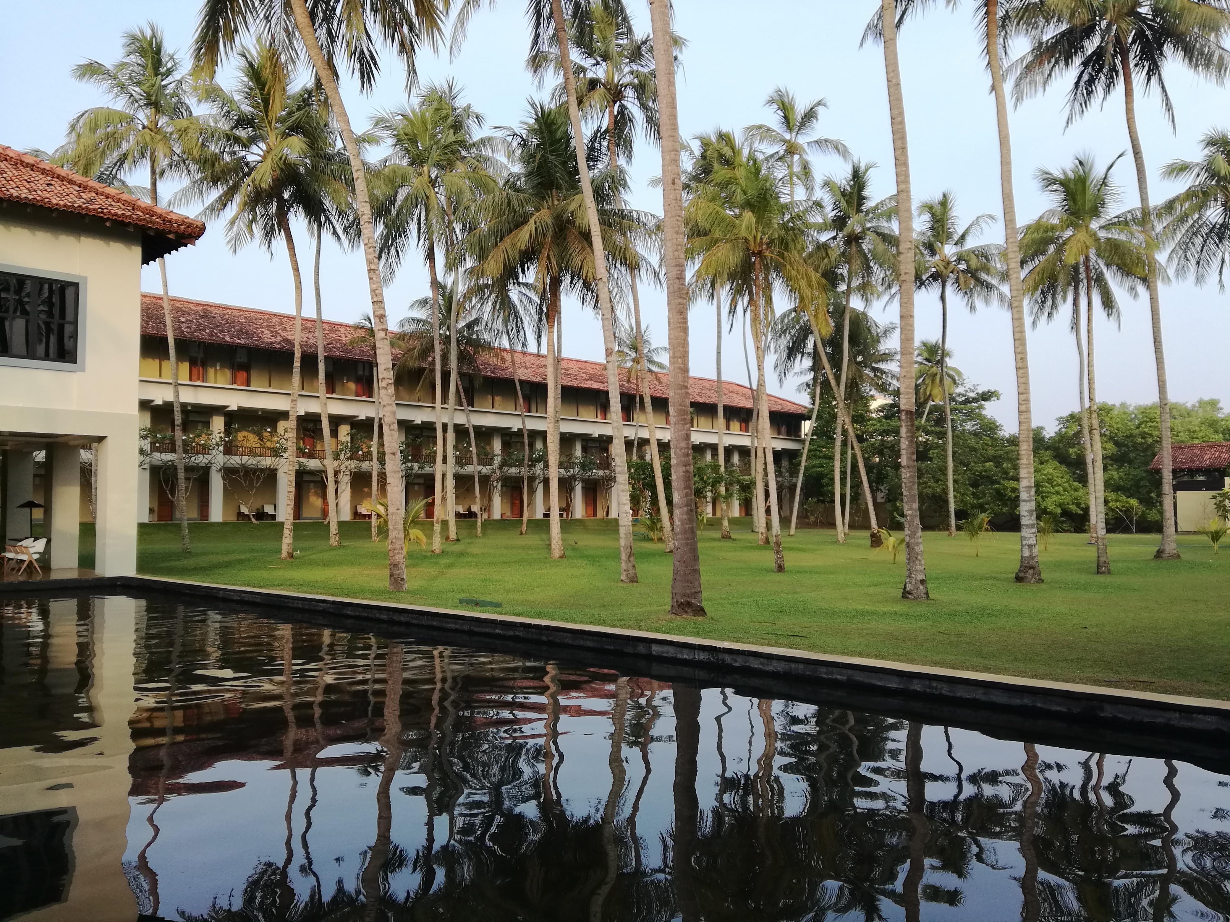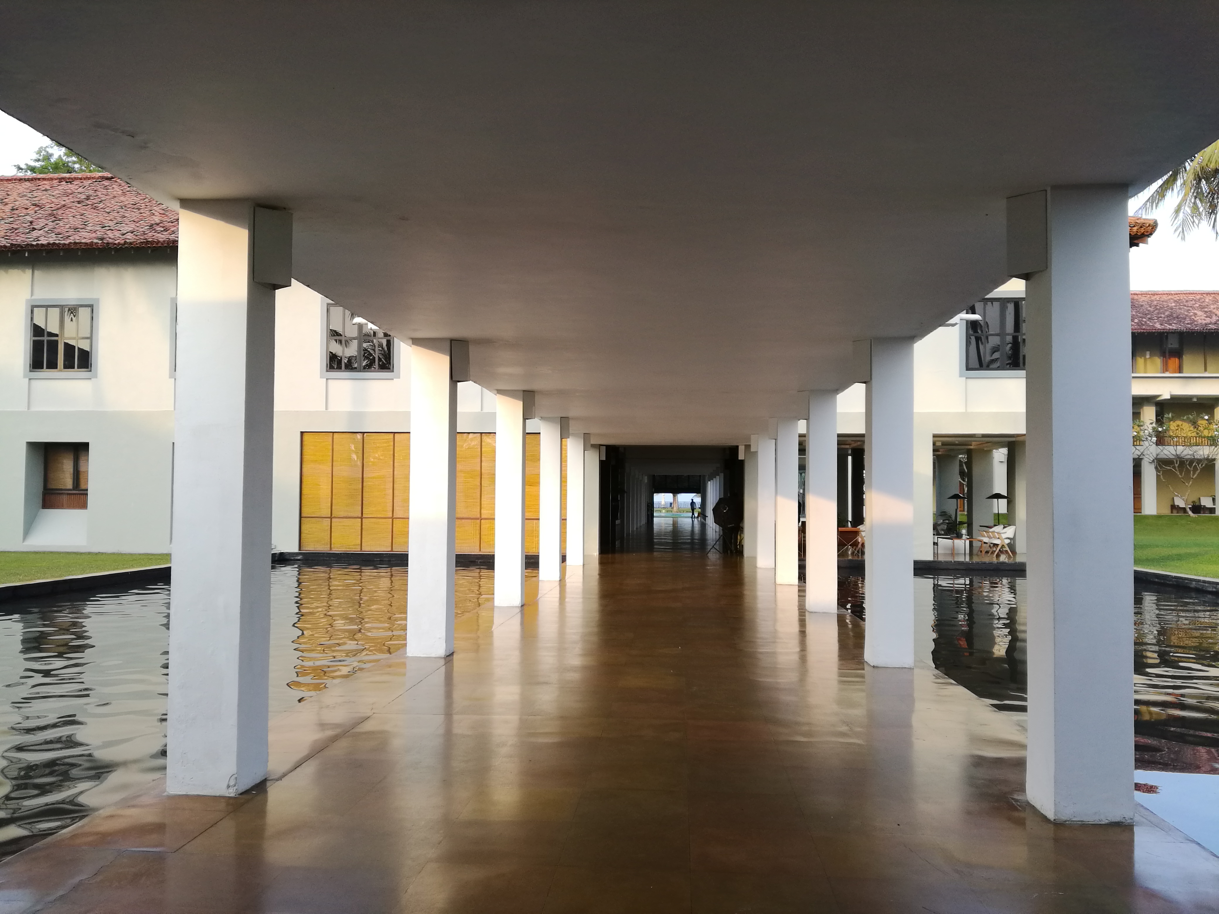 又长又平的海滩之间的椰树林里,有着很长的轴线和很大的庭院。同雅拉的LAYA SAFARI(莱雅游猎酒店)一样,蓝水酒店的每间(套)房都能看到海。设计者杰弗里•巴瓦(Geoffrey Bawa,1919-2003)是斯里兰卡最多产和最具影响力的国宝级建筑设计师,被誉为“斯里兰卡之光”、“亚洲建筑之父”,蓝水酒店是他的遗作。