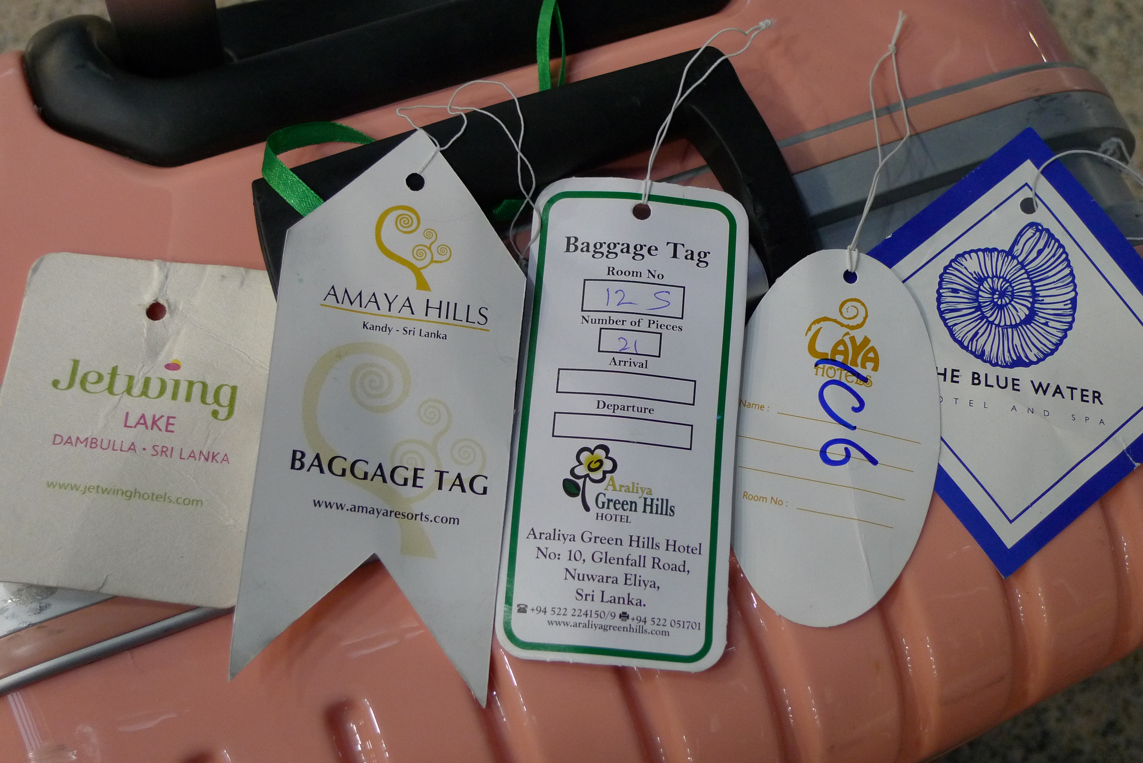 此行给我留下深刻印象的是酒店各式各样的行李牌。我们团全程五星酒店住宿,提供搬运行李的服务,每天抵达酒店时,就会有行李员把大家的行李从车上卸下搬入大堂,并一一拴上行李牌,分好房之后,只需向行李员提供房间号,他会记在行李牌上,不一会儿就会将行李送至房间,这时给他一美元小费就OK了。第二天临出发前,只需将收拾好的行李放置房间门口,自会有行李员取走并装车。