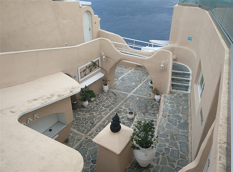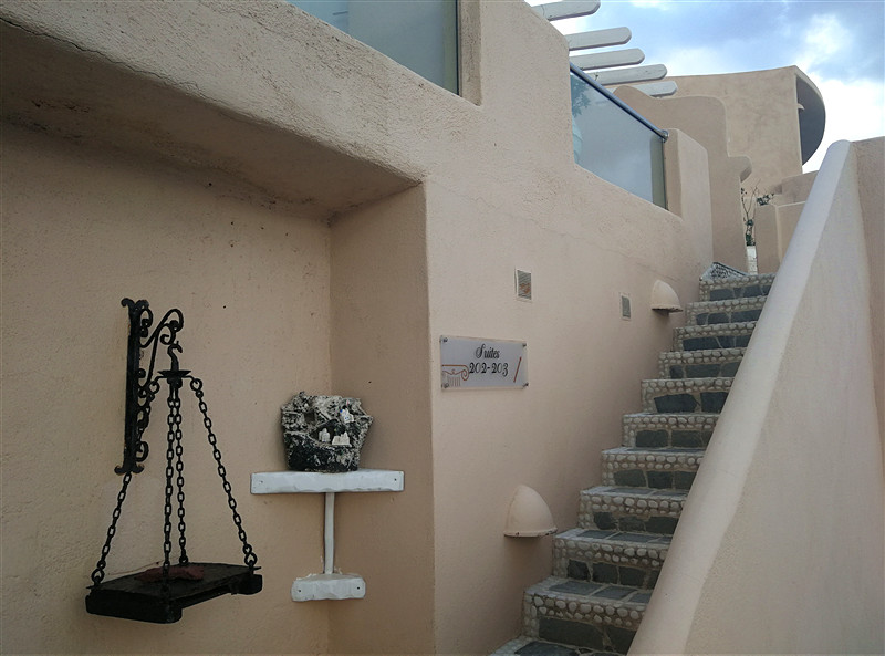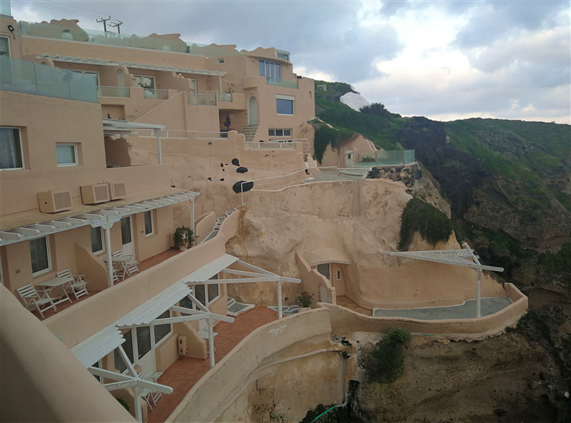 我们住的酒店叫圣托里尼神洞水疗套房酒店,每个客房都配有阳台、海景和必备的生活卫生设施和用品,酒店还有好几个大小不一的泳池,(总统套房 - 带私人游泳池)。每个客房的外观和内部装潢布置都不相同,团友们进了房间十分惊喜,都纷纷晒照片,居然没有雷同的。
