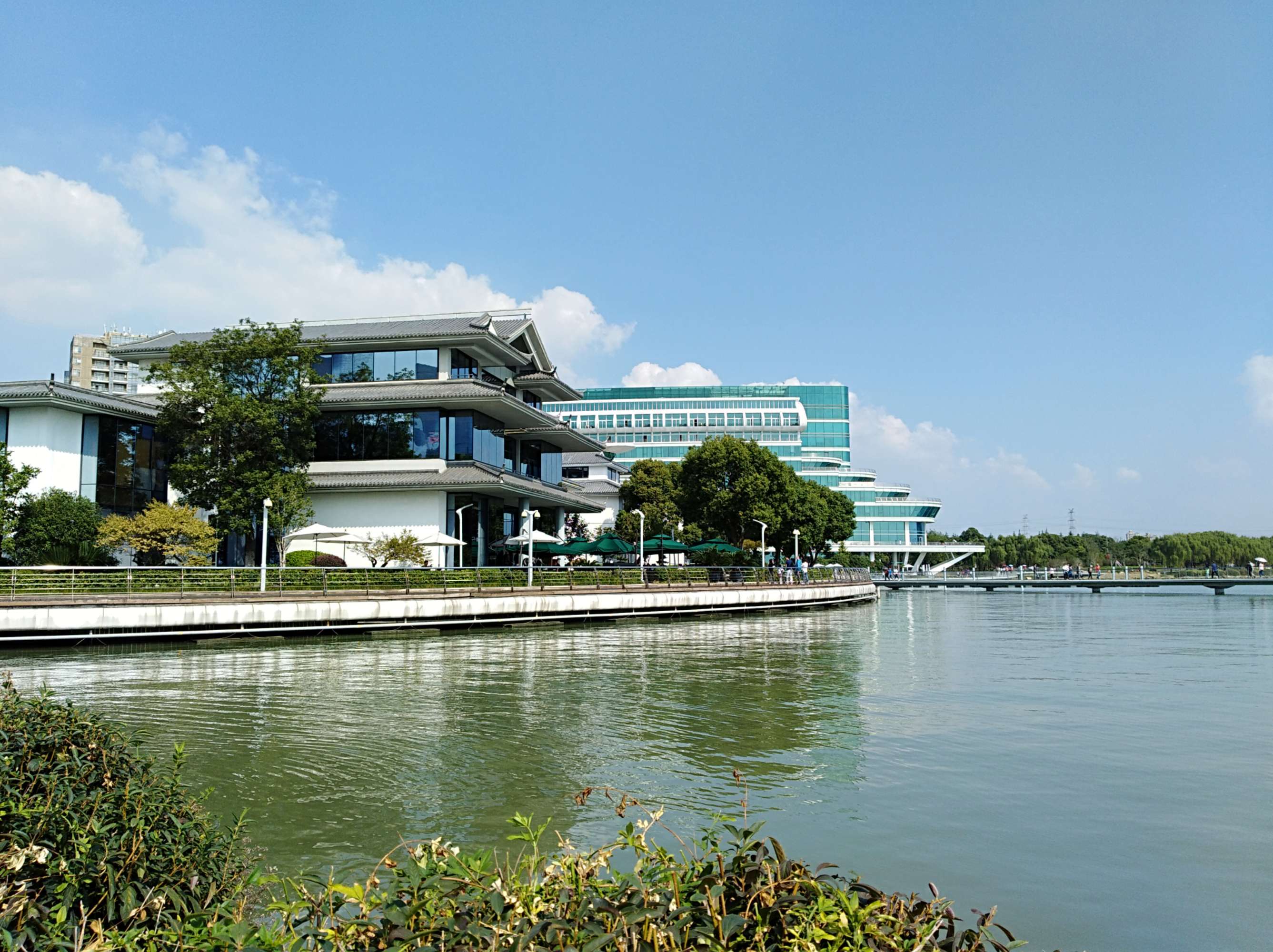 我觉得上海周边的苏州,实在是一个值得多次前往游览的城市。这是一个有着园林景观以及水乡人家的都市,我已经前前后后去过好几次,那里的虎丘景色,寒山寺的钟声,拙政园,留园以及狮子林里面的山山水水,曲径通幽的美妙,是让人流连忘返的地方。除此之外,新开发的金鸡湖,也是不错的选择,地标性建筑的“秋裤”,不得不赞叹它的雄伟庄重美丽。金鸡湖环湖步道上的栈桥绵绵长长,在湖面上画出S型曲线,仿佛随风飘荡,即将消失在美丽的远方,令人遐想。走在飘带一样生动的桥面上,远眺近望,无处不美,匠心独运的中国风格,特别令人点赞!同时,苏州的美食也是味蕾的满足,甜甜蜜蜜的豆腐干,香香嫩嫩的松鼠桂鱼,暖心暖胃的藏书羊肉,实实在在是吃货的天堂。