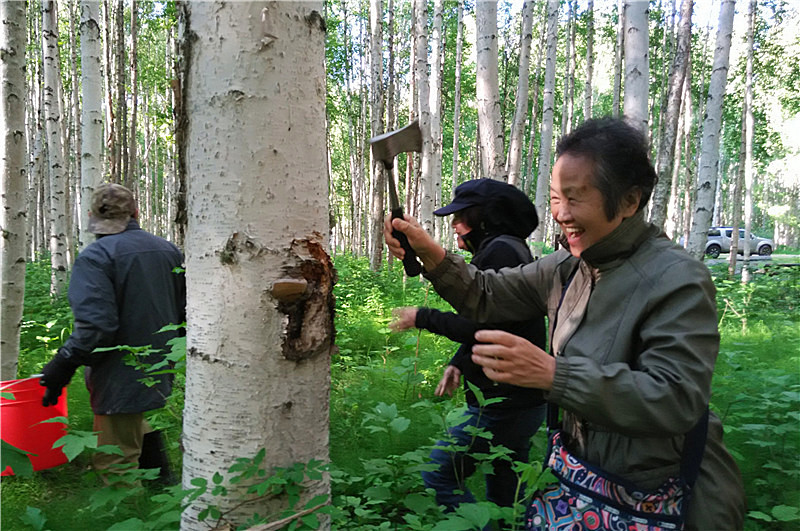 当地人带我们去白桦林采木蹄灵芝,好玩、刺激,收获还大大的……