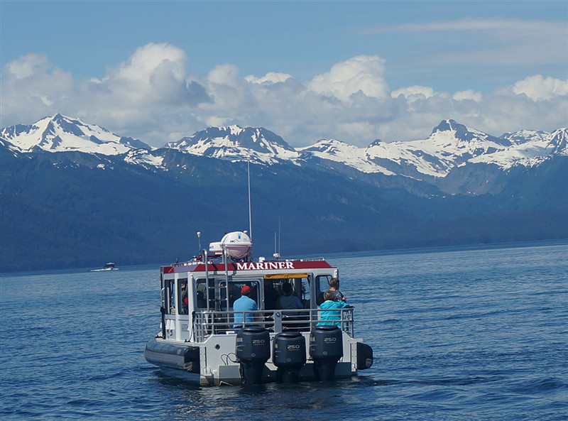 在蓝天白云雪山冰海的环抱中观鲸,让人感觉很奇妙也特享受。